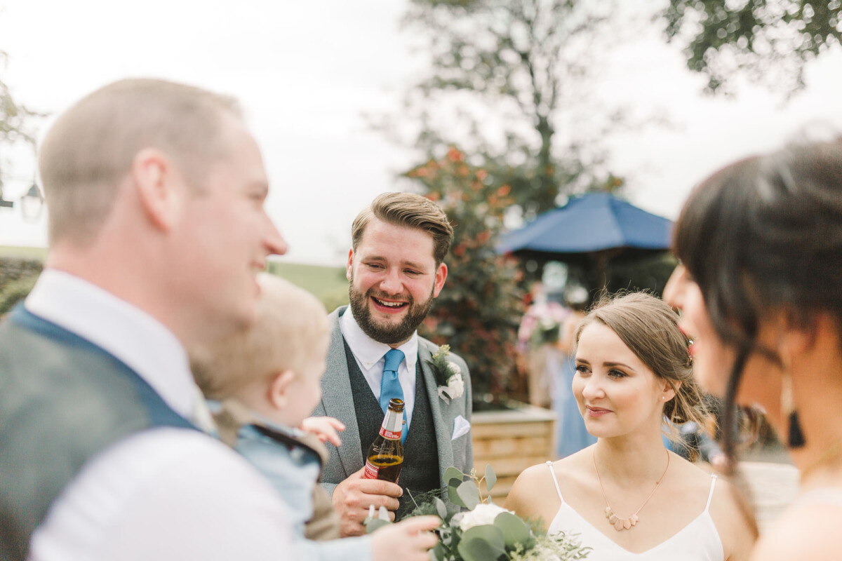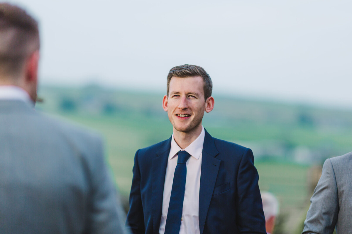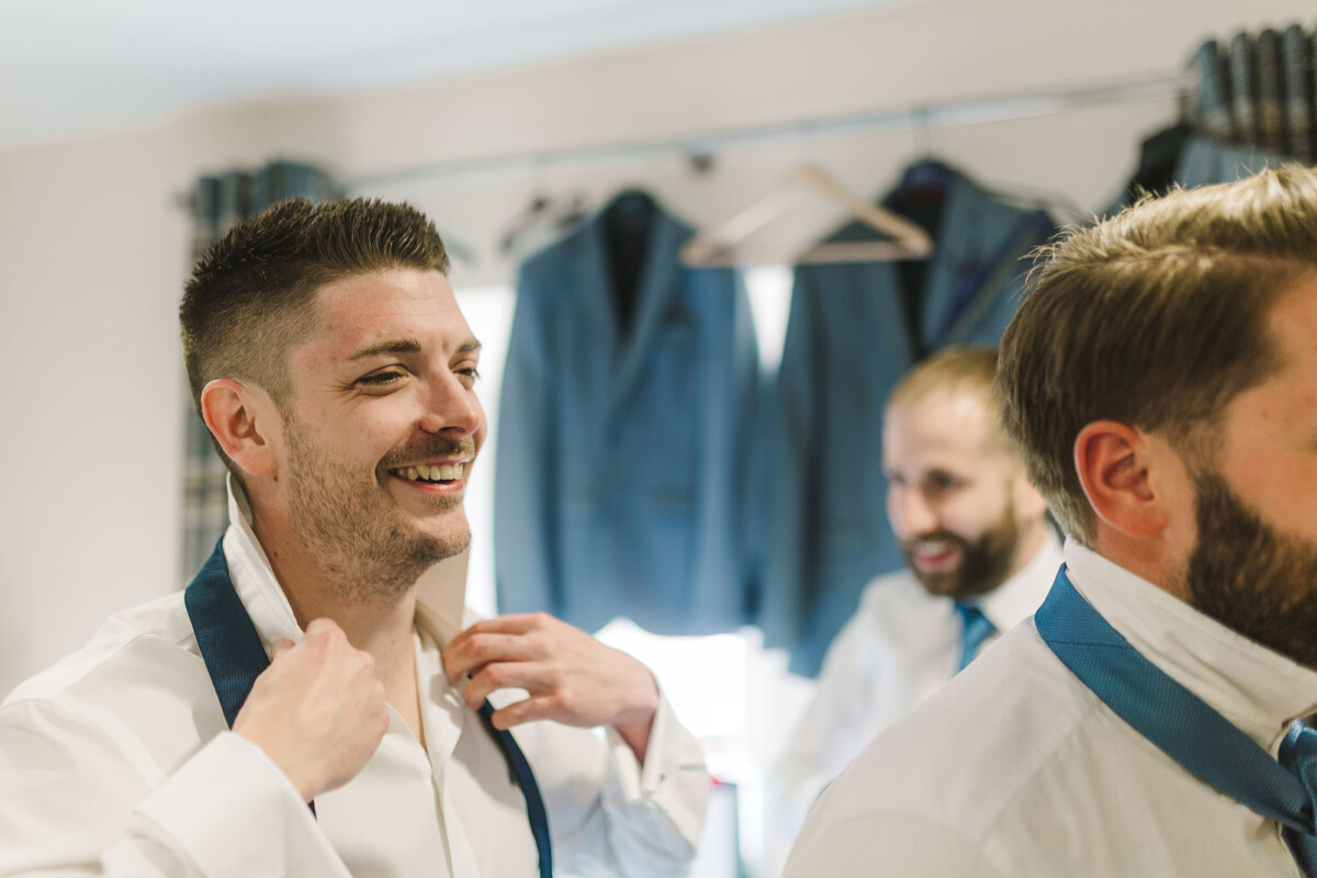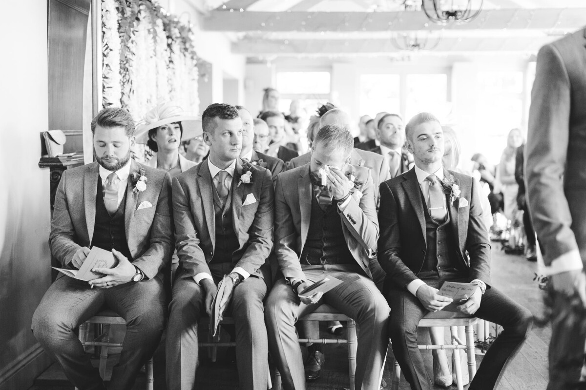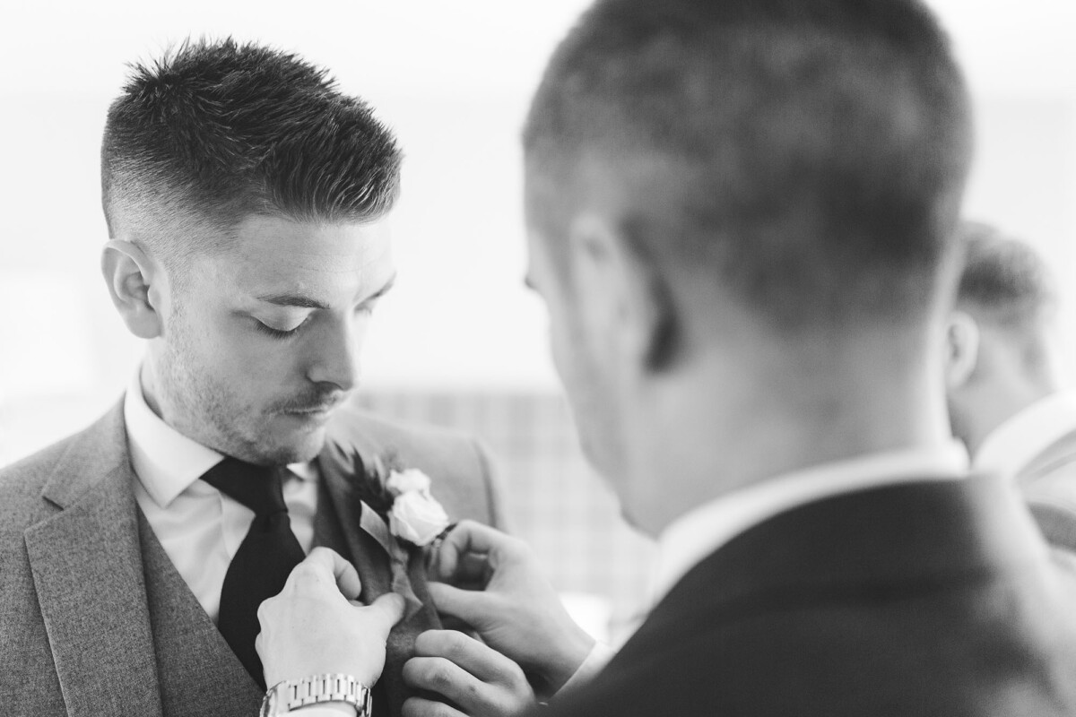 Emma and Rowan were both able to get ready at The Alma Inn. They had rooms close by to each other but managed to avoid bumping into each other! Emma had make-up in one room and hair in another which left her bedroom relaxed for hanging out and getting dressed. Emma had the most beautiful Justin Alexander dress from The Harrogate Wedding Lounge. Everyone couldn’t help but swoon over the beautiful detail at the back. Rowan and his friends went out to admire the views and have a drink before the ceremony.