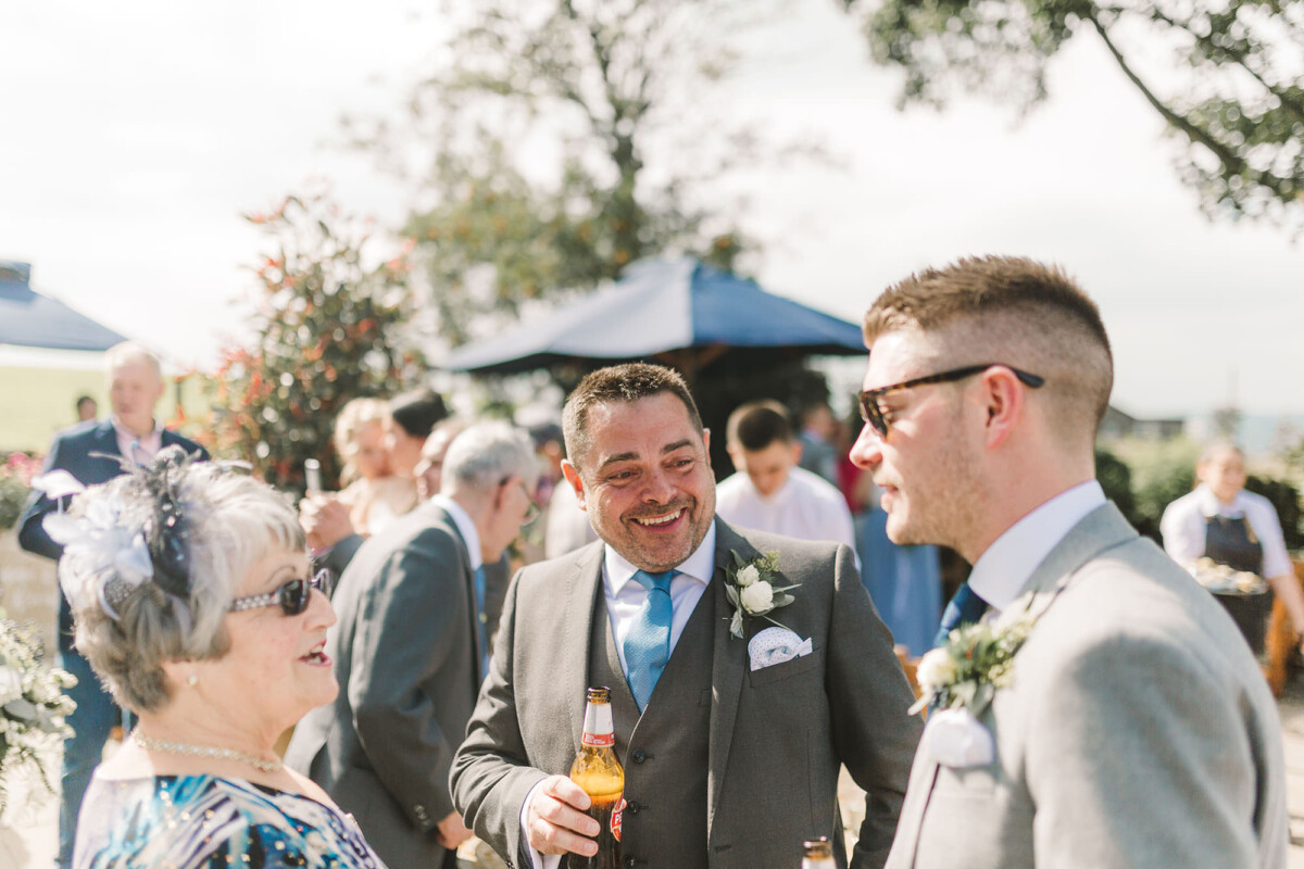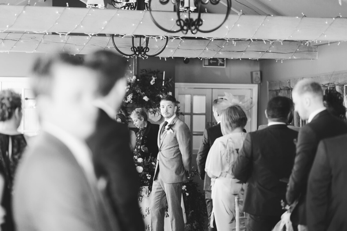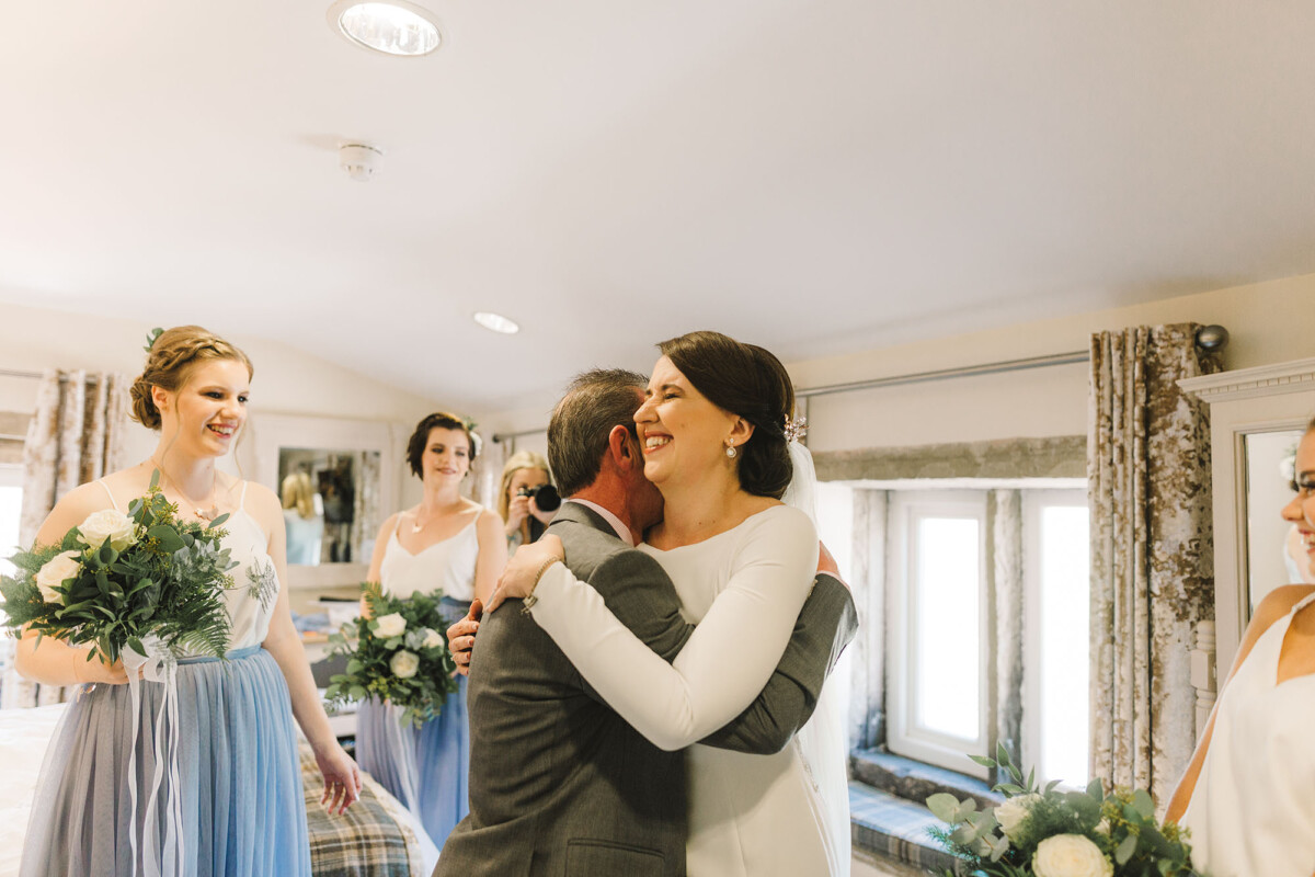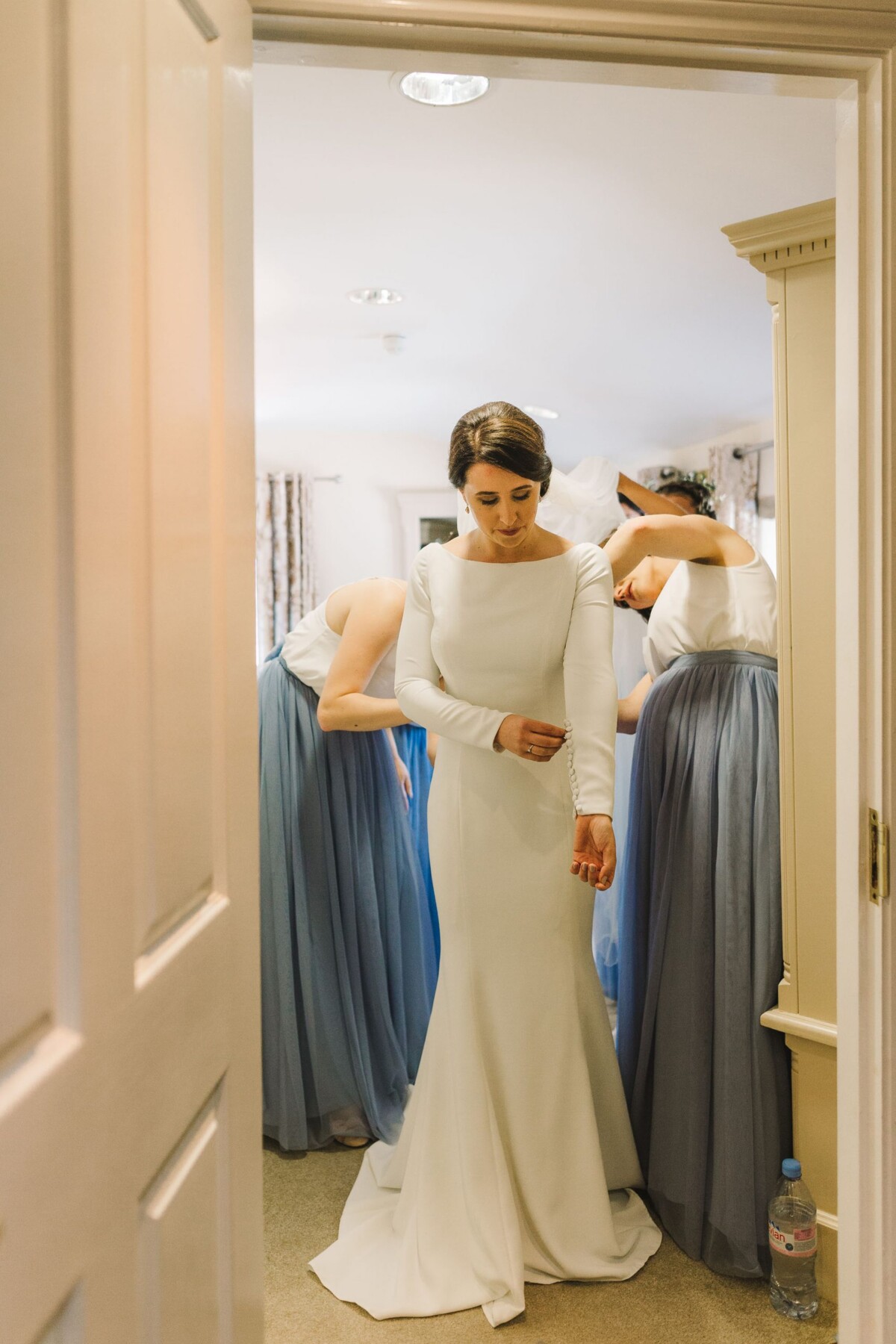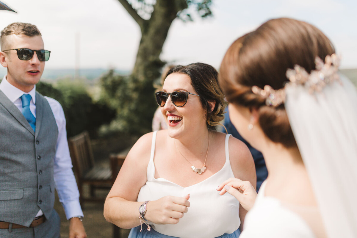 Emma and Rowan were both able to get ready at The Alma Inn. They had rooms close by to each other but managed to avoid bumping into each other! Emma had make-up in one room and hair in another which left her bedroom relaxed for hanging out and getting dressed. Emma had the most beautiful Justin Alexander dress from The Harrogate Wedding Lounge. Everyone couldn’t help but swoon over the beautiful detail at the back. Rowan and his friends went out to admire the views and have a drink before the ceremony.