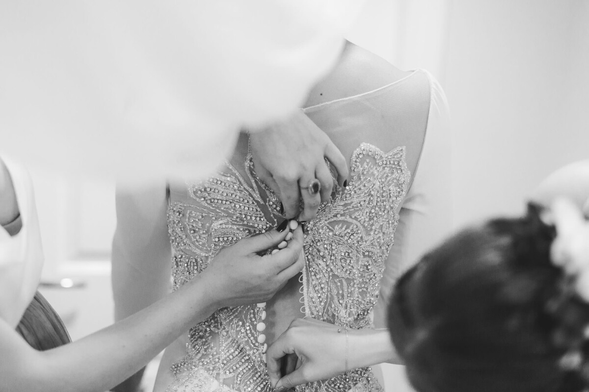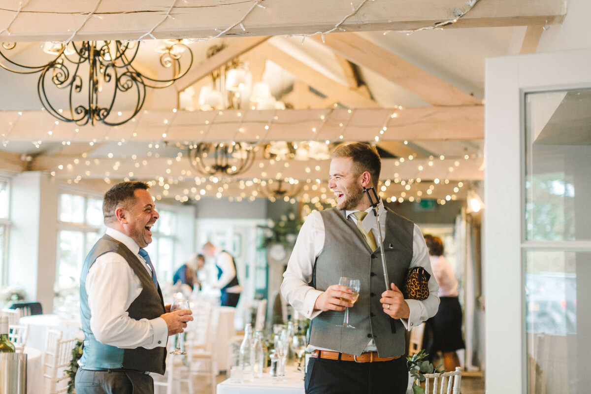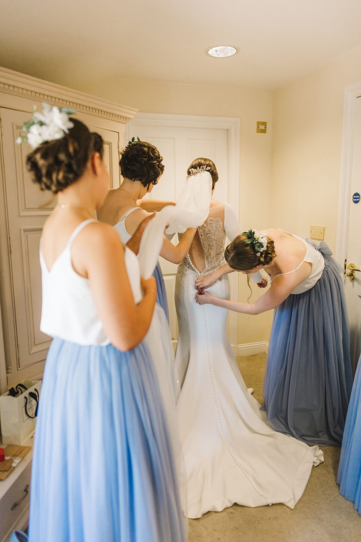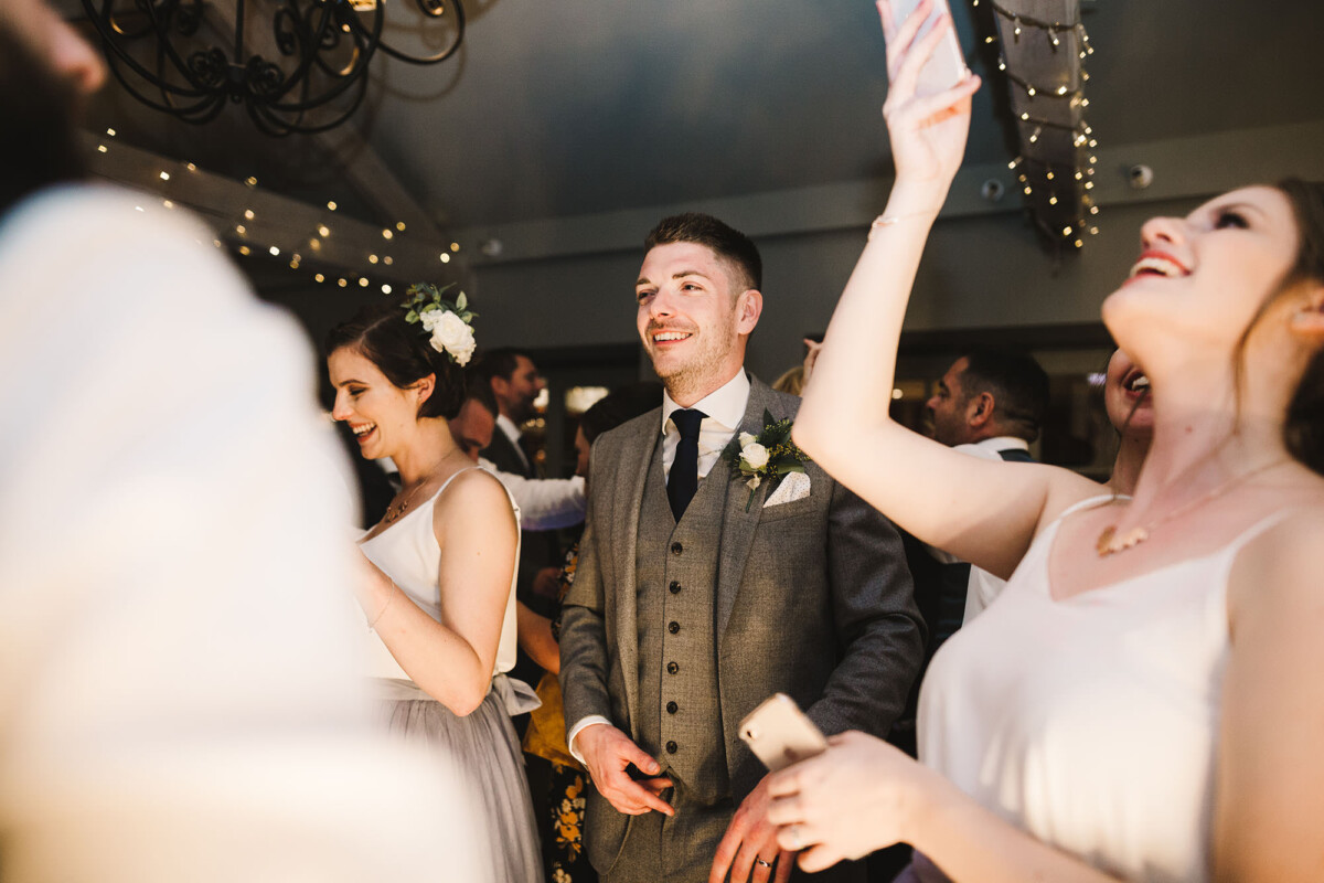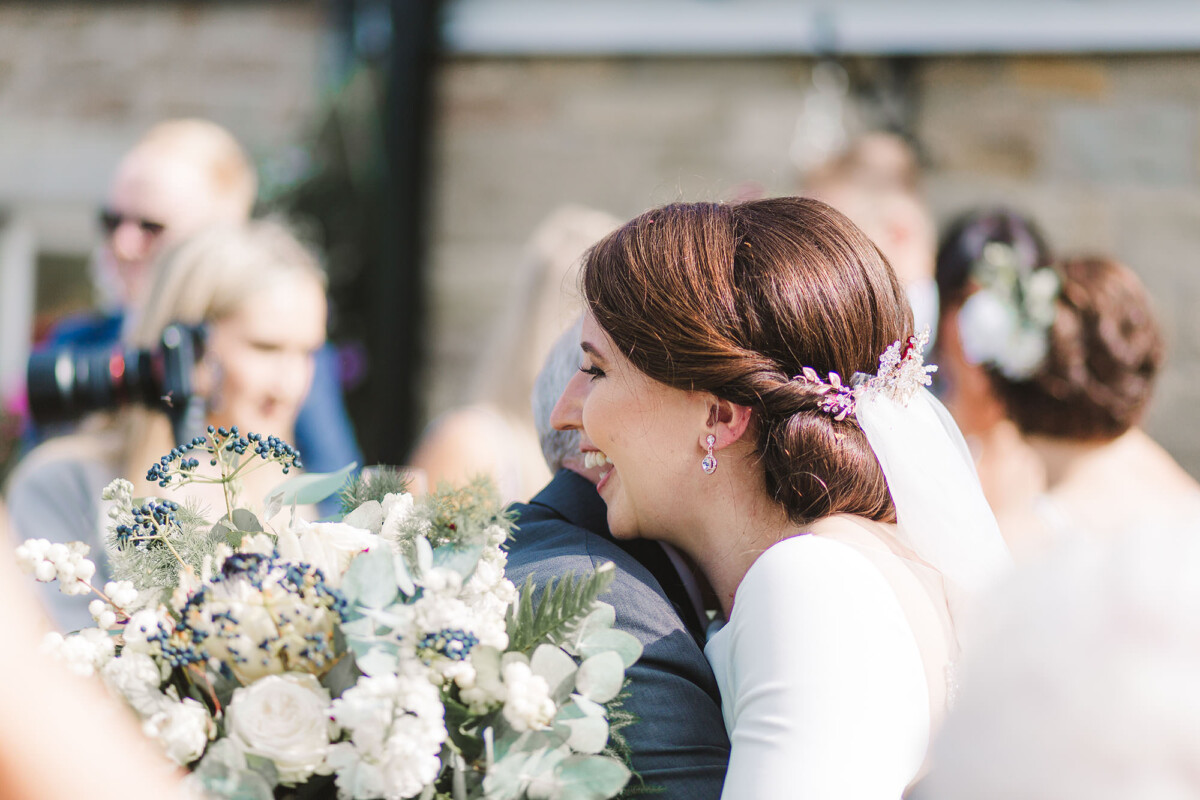 Emma and Rowan were both able to get ready at The Alma Inn. They had rooms close by to each other but managed to avoid bumping into each other! Emma had make-up in one room and hair in another which left her bedroom relaxed for hanging out and getting dressed. Emma had the most beautiful Justin Alexander dress from The Harrogate Wedding Lounge. Everyone couldn’t help but swoon over the beautiful detail at the back. Rowan and his friends went out to admire the views and have a drink before the ceremony.