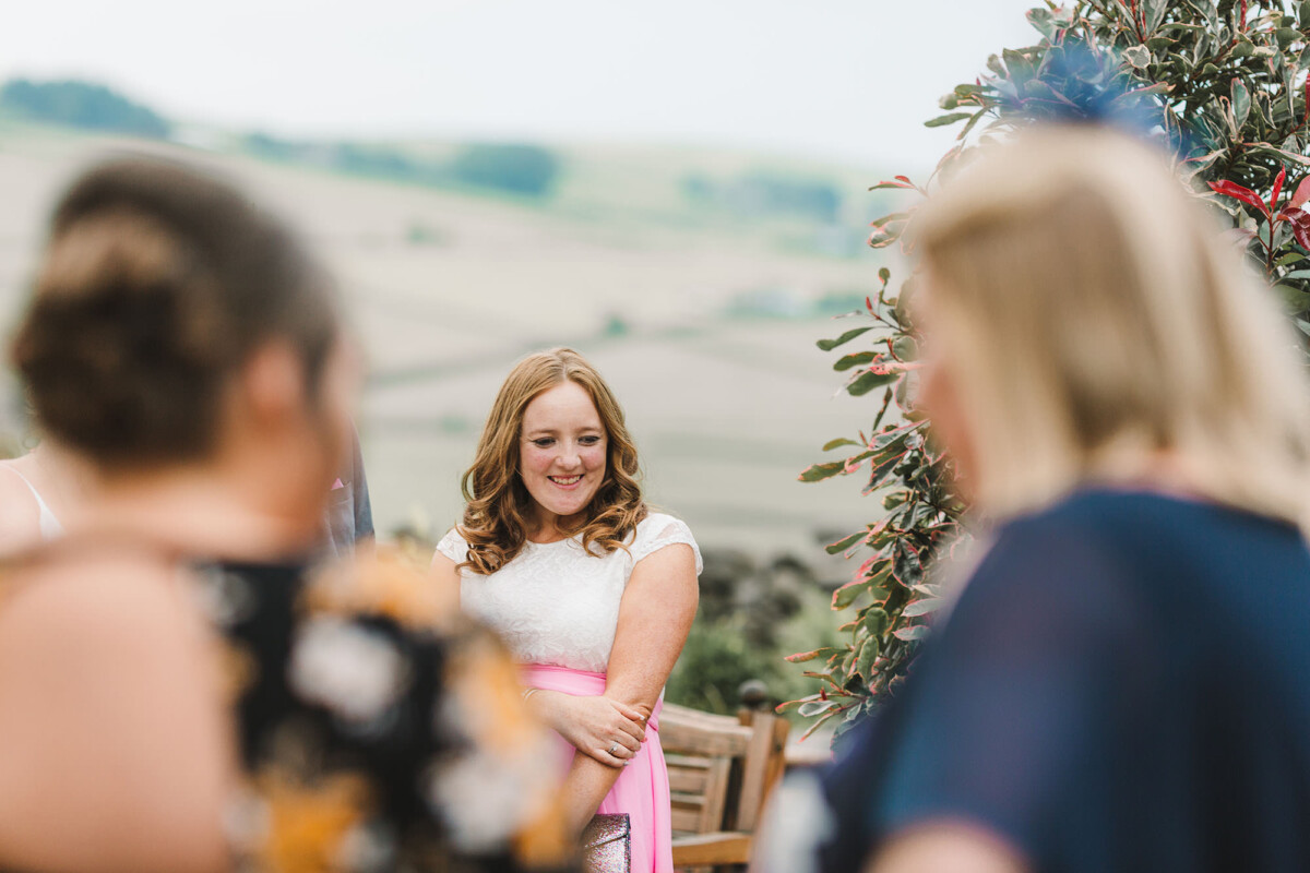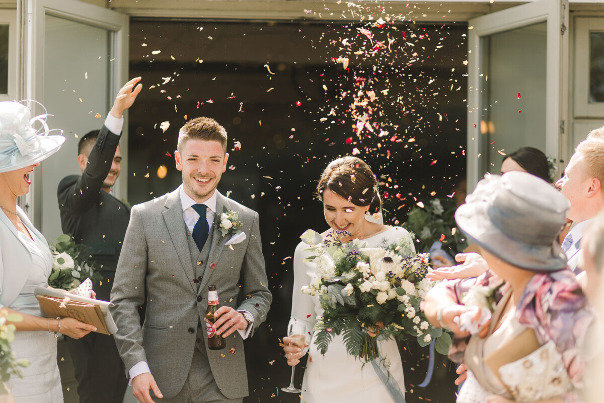 Emma and Rowan had a gorgeous ceremony with lots of tears. Several friends did readings and it was very personal. The large windows of the conservatory let in lots of light and the view is absolutely stunning. They walked straight out of their ceremony into a tunnel of confetti throwing guests.