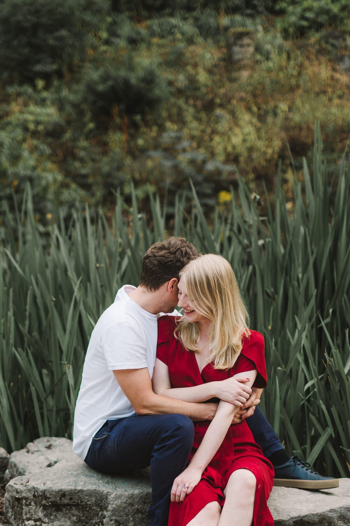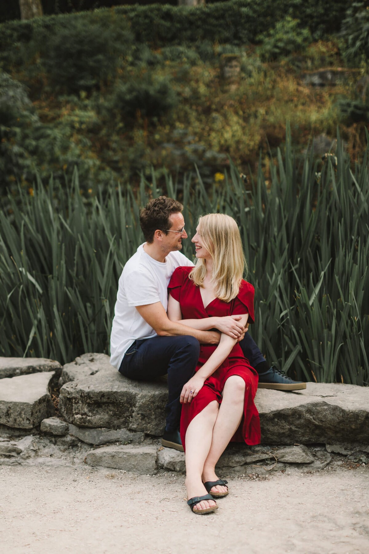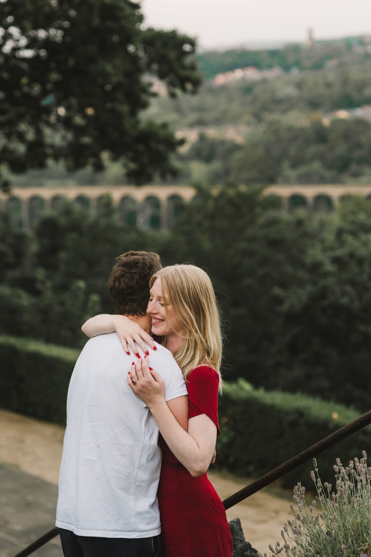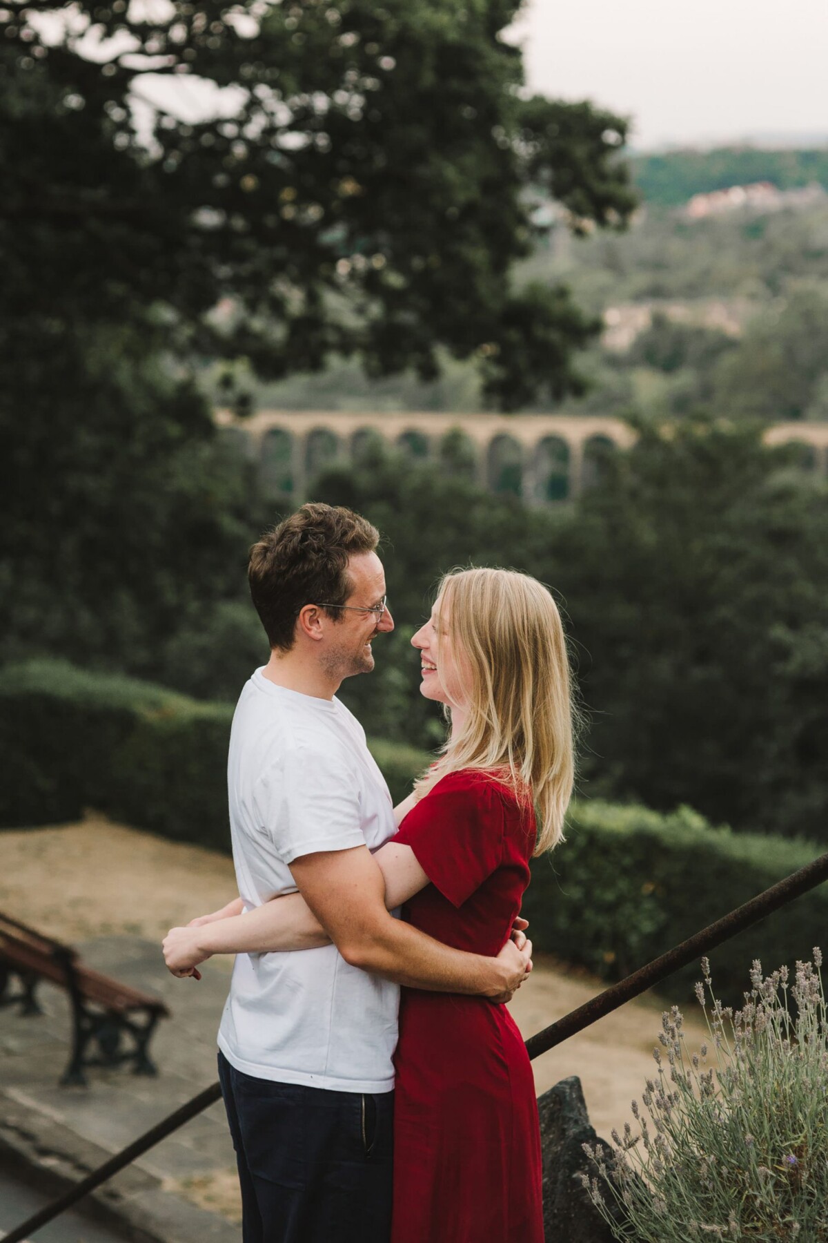 We started our Beaumont Park Huddersfield engagement shoot in the bandstand and then walked along the main path of the park. I tried out lots of my simple posing techniques with them – which really only involve a teeny bit of direction and a few silly games. It’s just about finding ways that you feel comfortable when standing close together (probably closer than you would normally stand!). We ended our shoot with a few photos in front of the railway bridge. The park is particularly special to them because Paul’s relative once lived in the park’s lodges and worked in the park, so it was wonderful to capture some memories for them here. They were an absolute joy to spend a summer evening with and I’m so glad they like the photographs as much as I do.