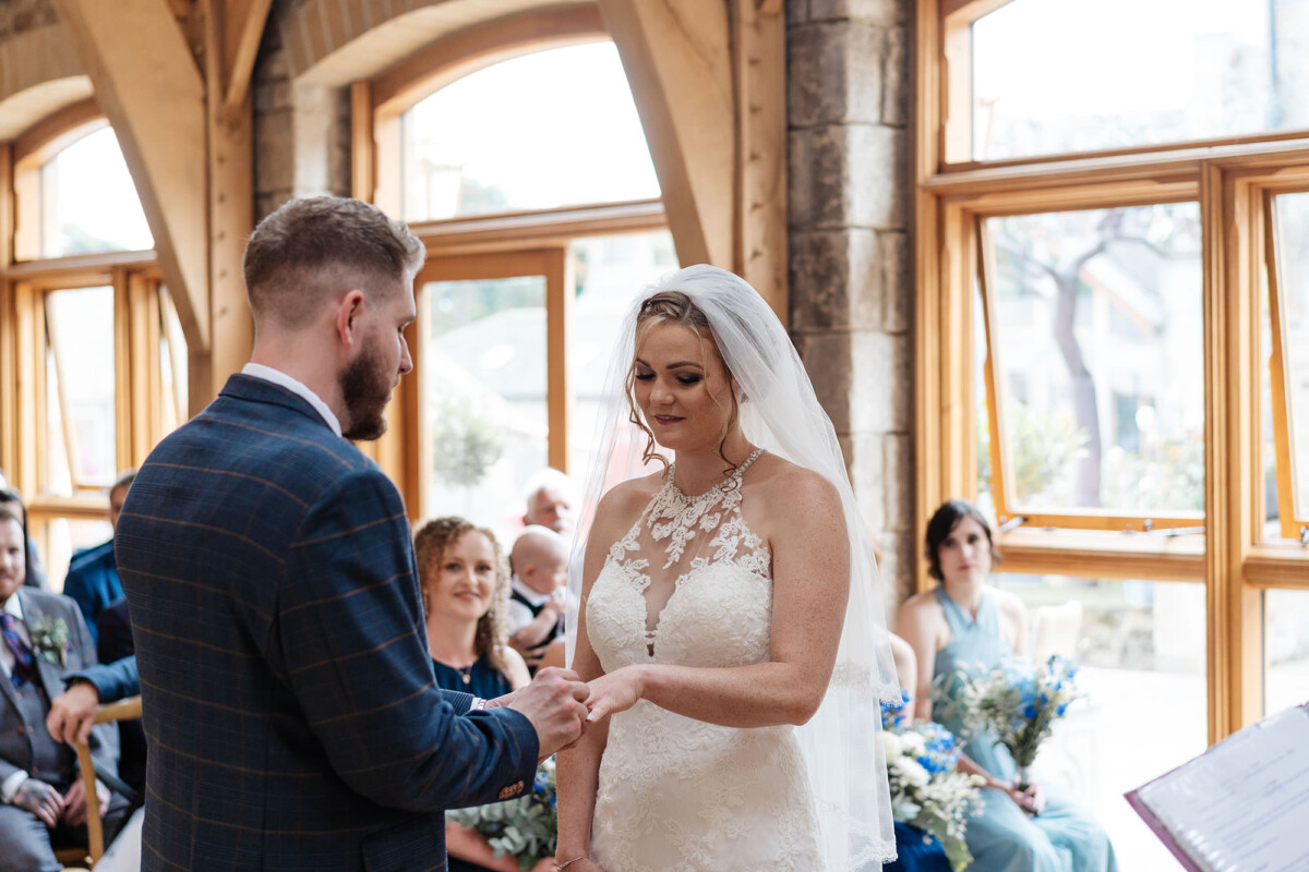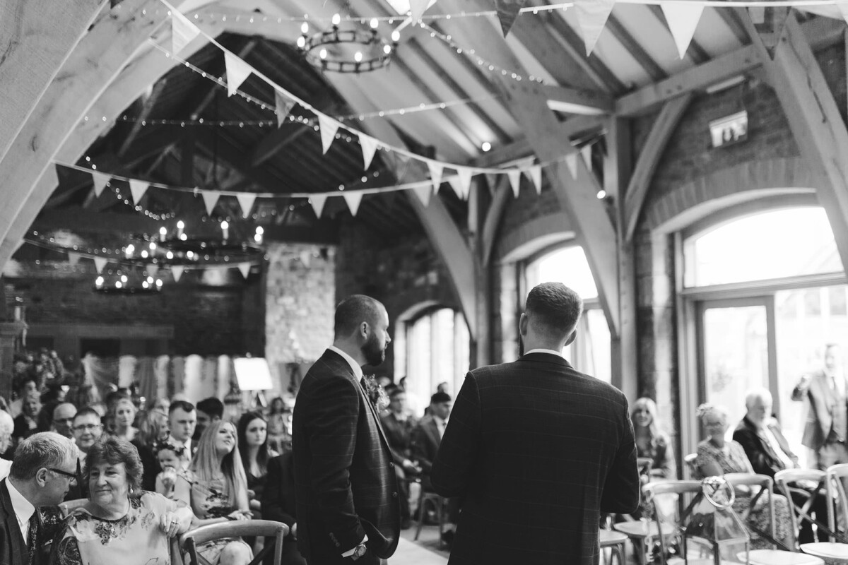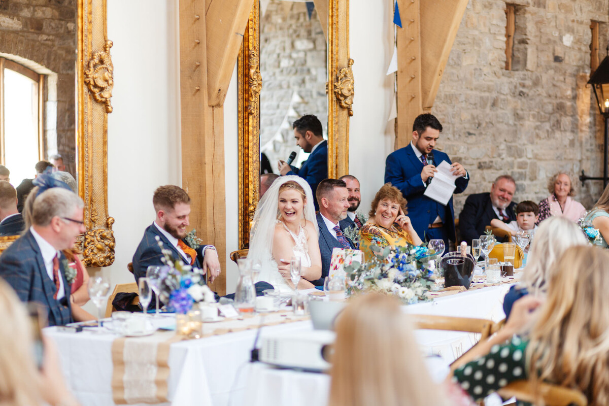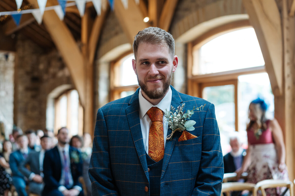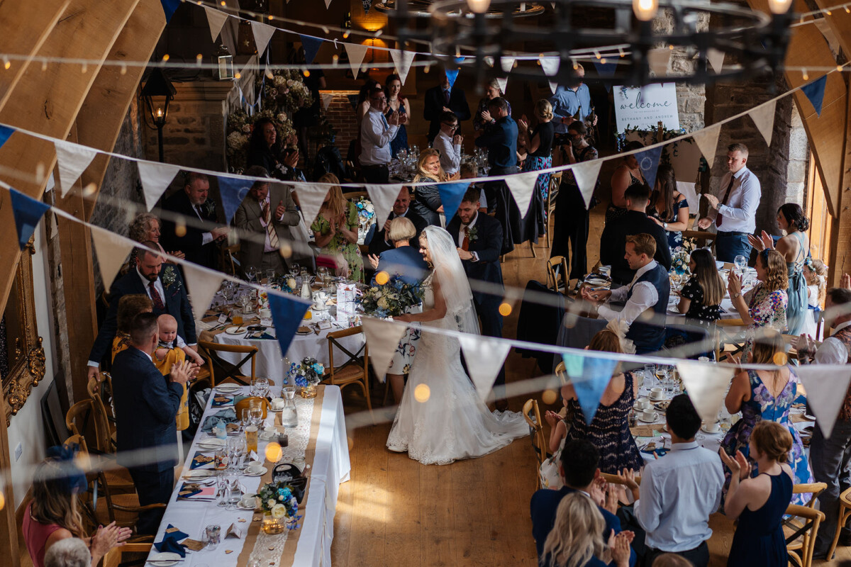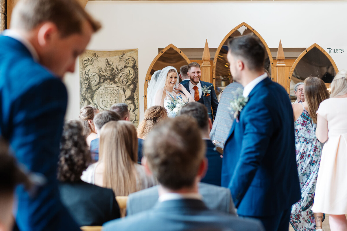 The ceremony was a beautiful service in a beautiful room. During the ceremony they had several beautiful readings from friends and family. It was really beautiful. They decorated the area with bunting, which I loved. The reception was in the barn at The Bell Barn at Tupgill Park – I love this venue because the food is incredible. Weddings at The Bell Barn at Tupgill Park are amazing, because the people are brilliant.