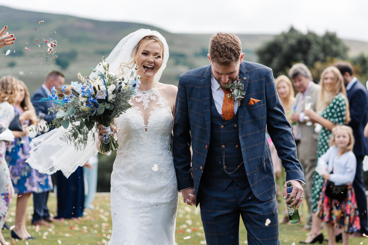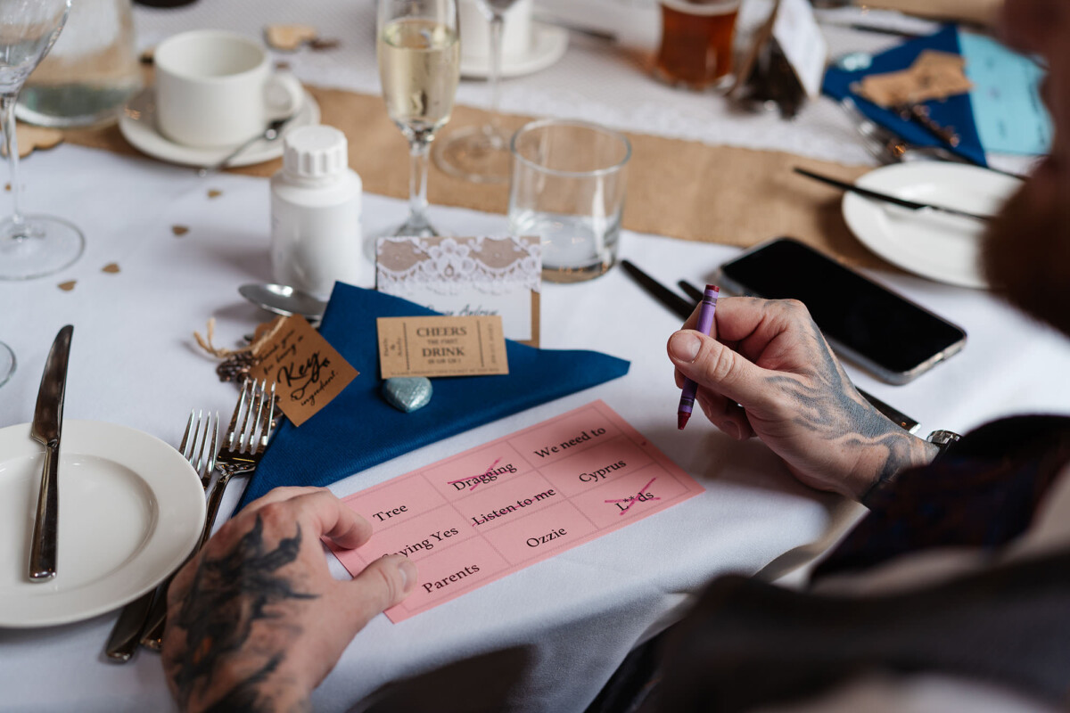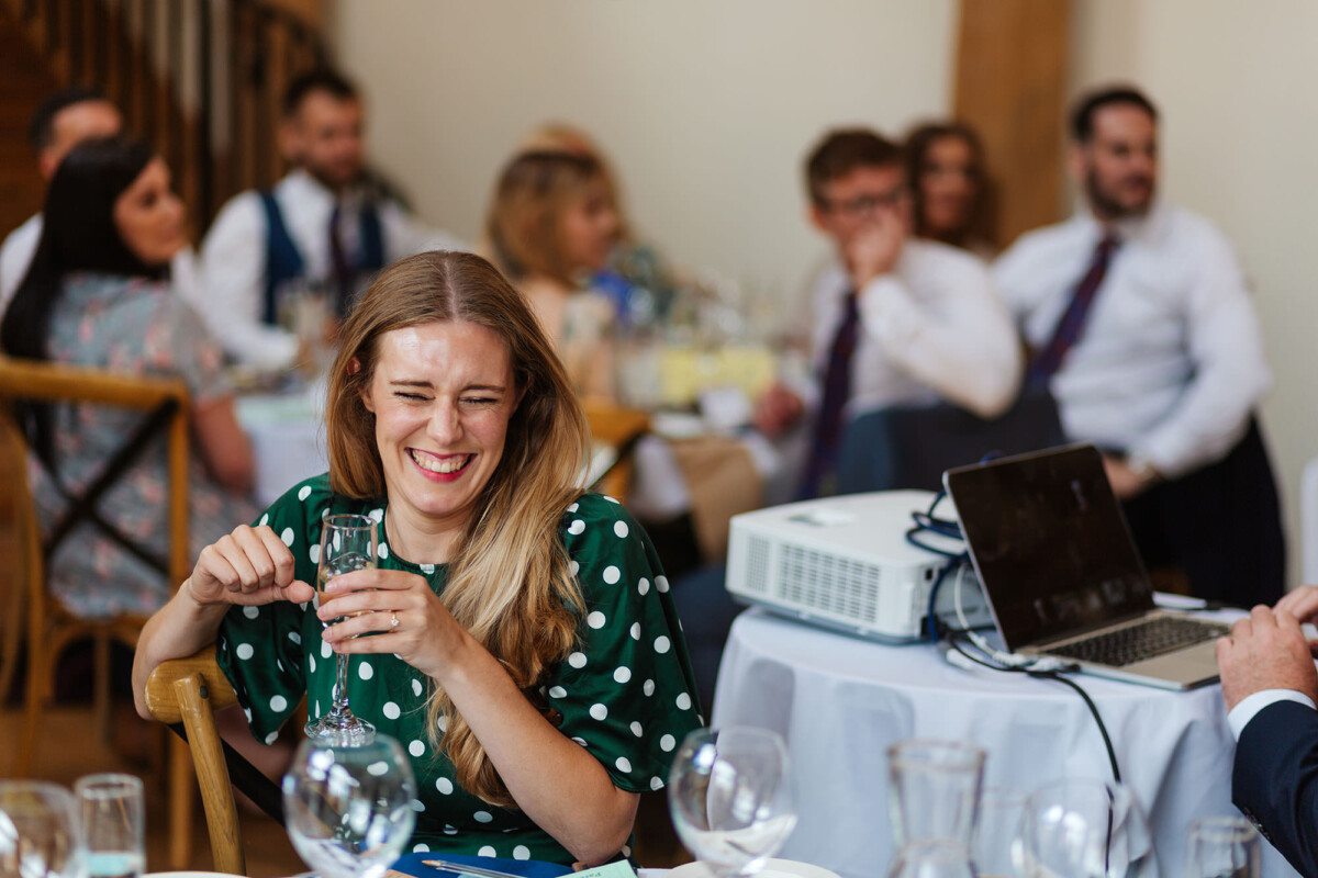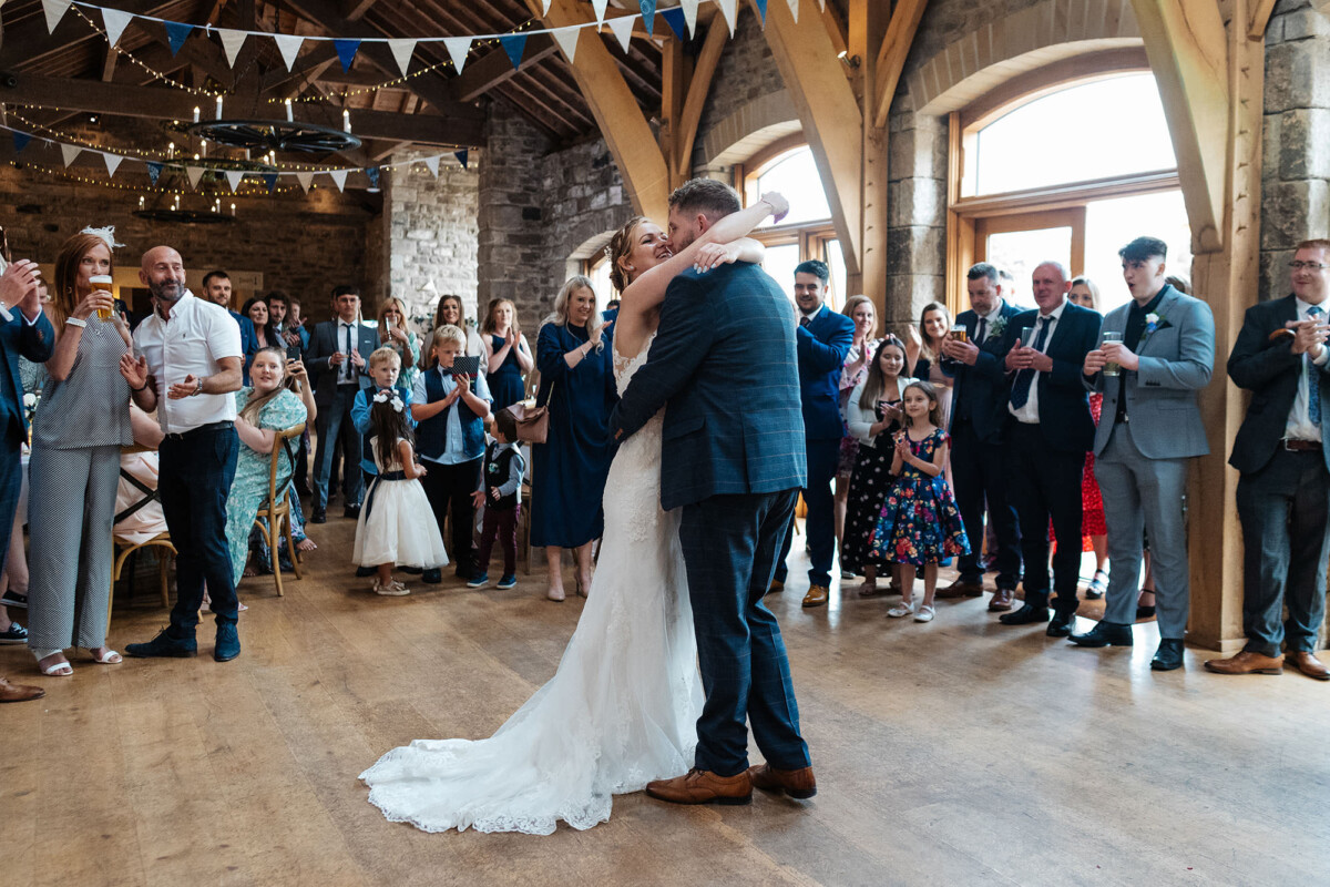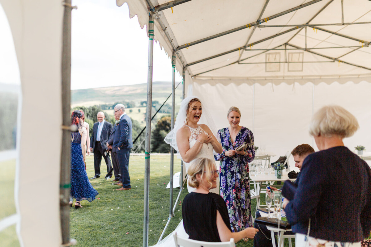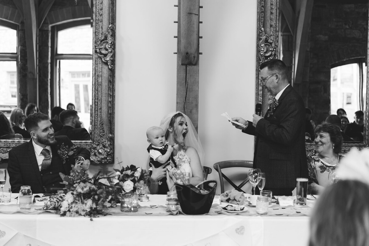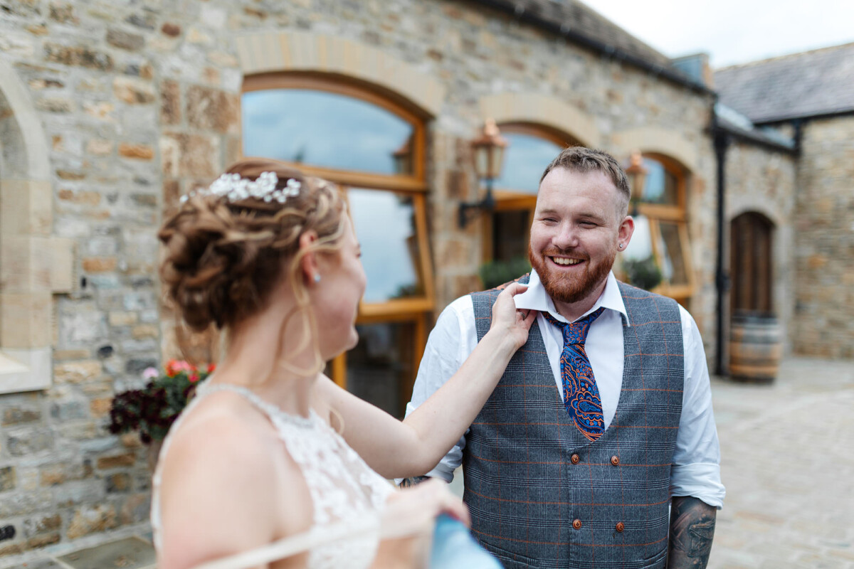 The ceremony was a beautiful service in a beautiful room. During the ceremony they had several beautiful readings from friends and family. It was really beautiful. They decorated the area with bunting, which I loved. The reception was in the barn at The Bell Barn at Tupgill Park – I love this venue because the food is incredible. Weddings at The Bell Barn at Tupgill Park are amazing, because the people are brilliant.