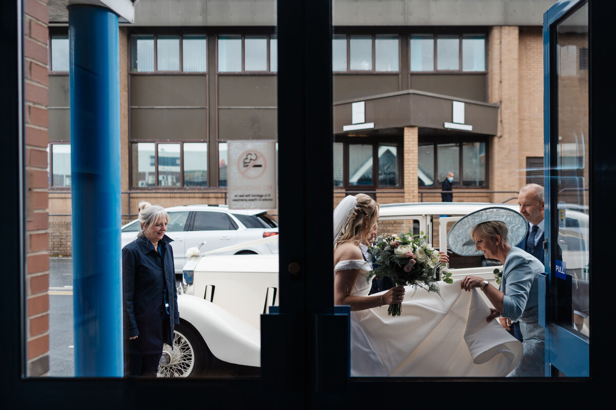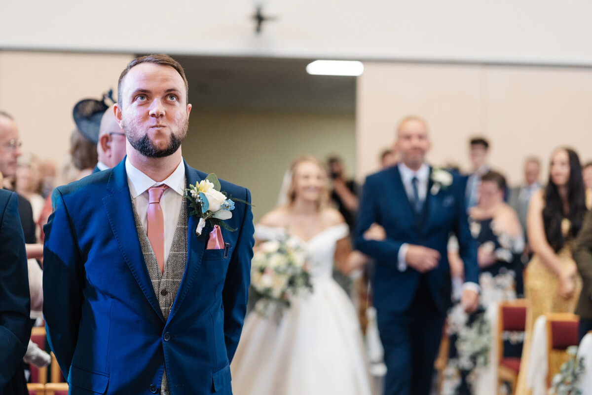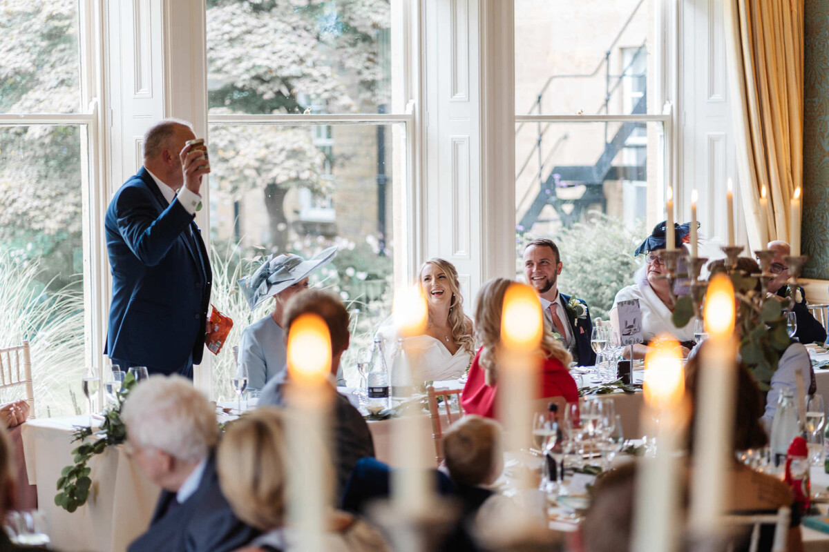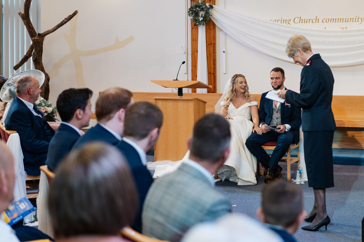 The ceremony was a church service at Castleford Salvation Army. During the ceremony, they had several beautiful readings from friends and family. It was really special that they got married in the church they attend. They decorated the church with flowers, which I loved. The reception was in a beautiful room at Bowcliffe Hall – I love this venue because the light is gorgeous for portraits and candids. Weddings at Bowcliffe Hall are amazing because the surroundings are completely stunning.
