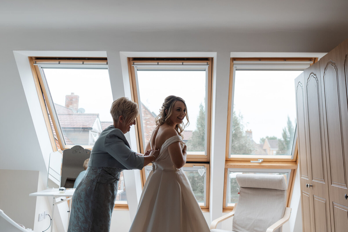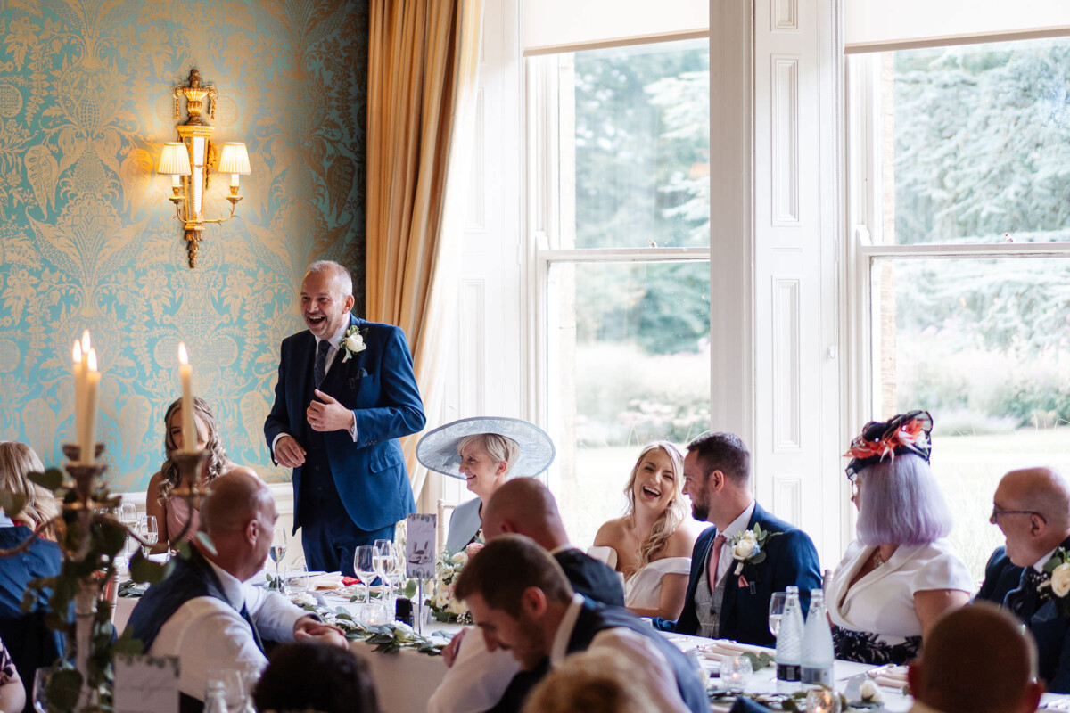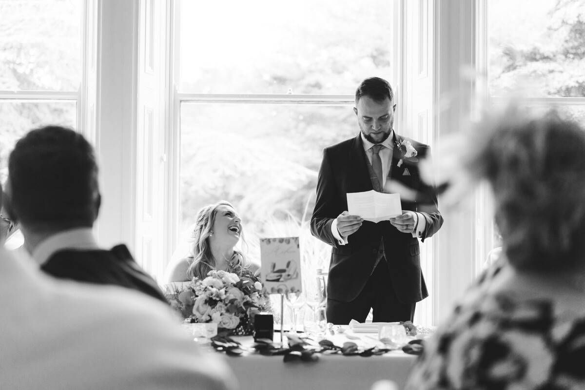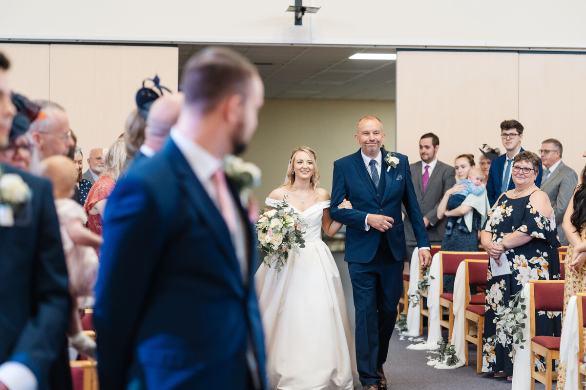 The ceremony was a church service at Castleford Salvation Army. During the ceremony, they had several beautiful readings from friends and family. It was really special that they got married in the church they attend. They decorated the church with flowers, which I loved. The reception was in a beautiful room at Bowcliffe Hall – I love this venue because the light is gorgeous for portraits and candids. Weddings at Bowcliffe Hall are amazing because the surroundings are completely stunning.