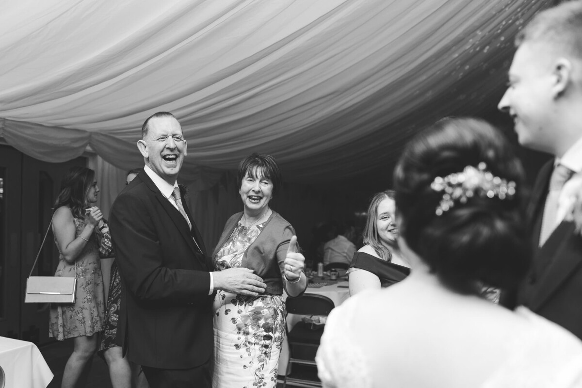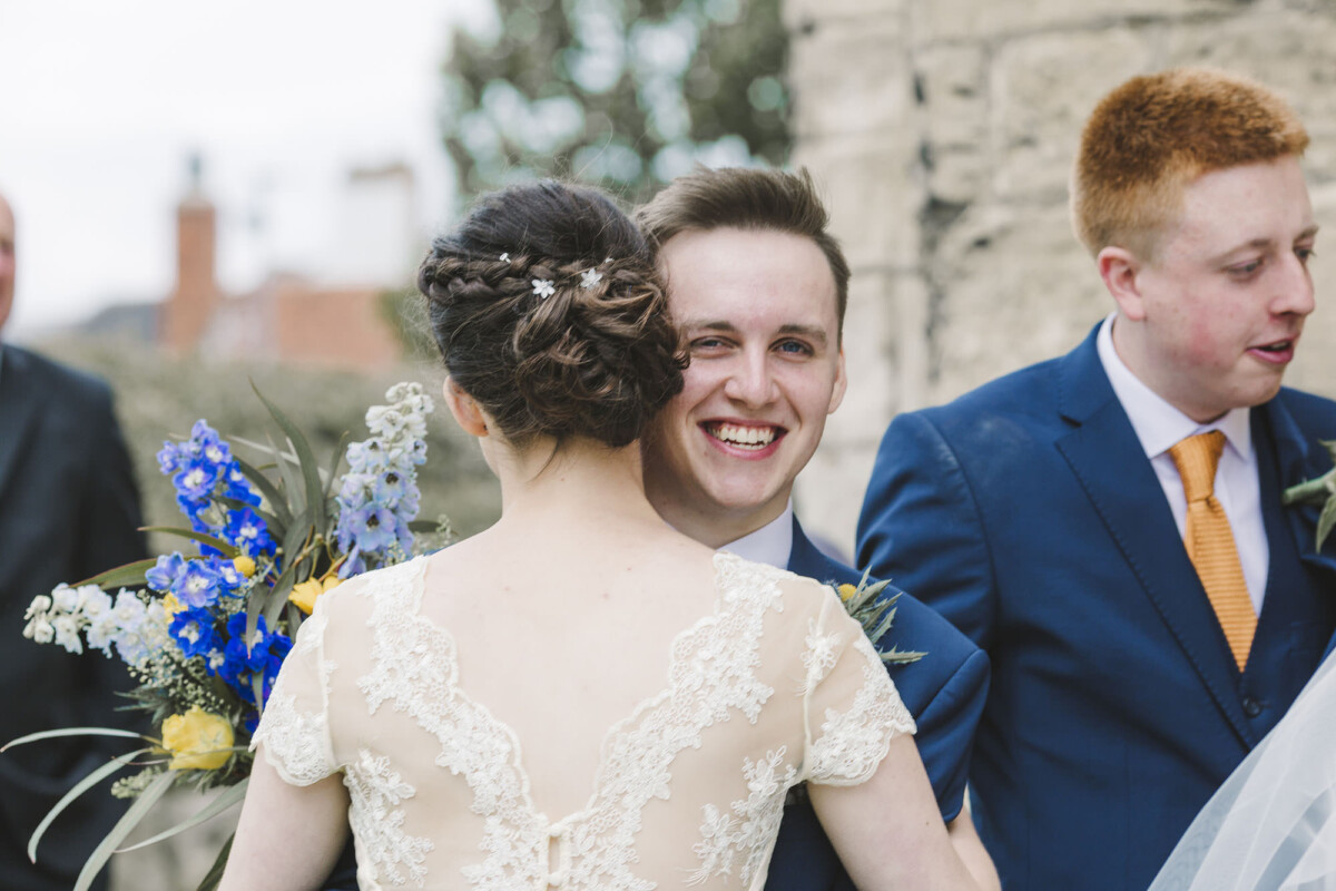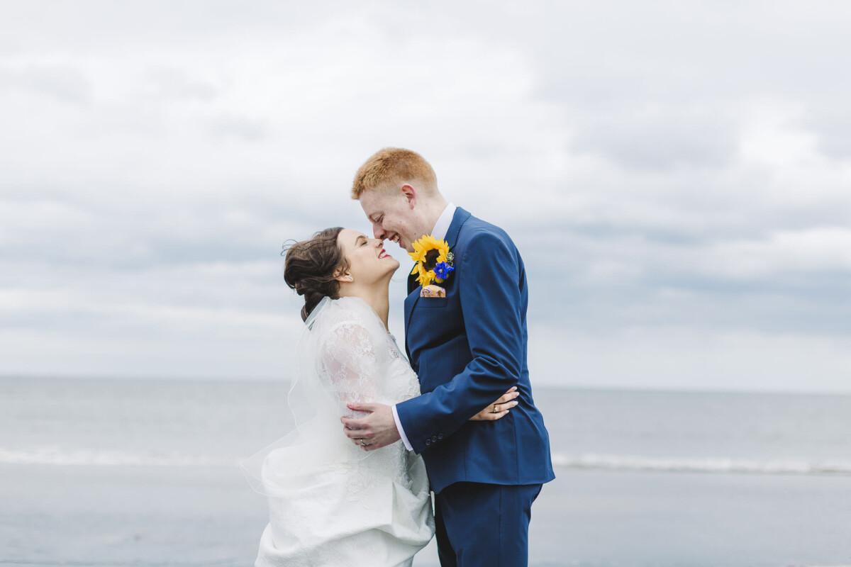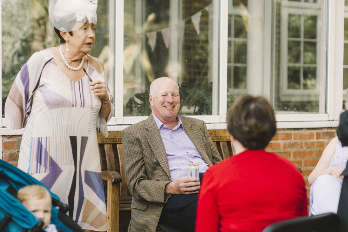 After the ceremony, I left the couple to mingle, which gave me a chance to take candid photos, and I got some really fun photos as they enjoyed the afternoon. The weather at this village hall wedding was sunny but windy, and we headed down to the beach for some portraits before driving to the reception.