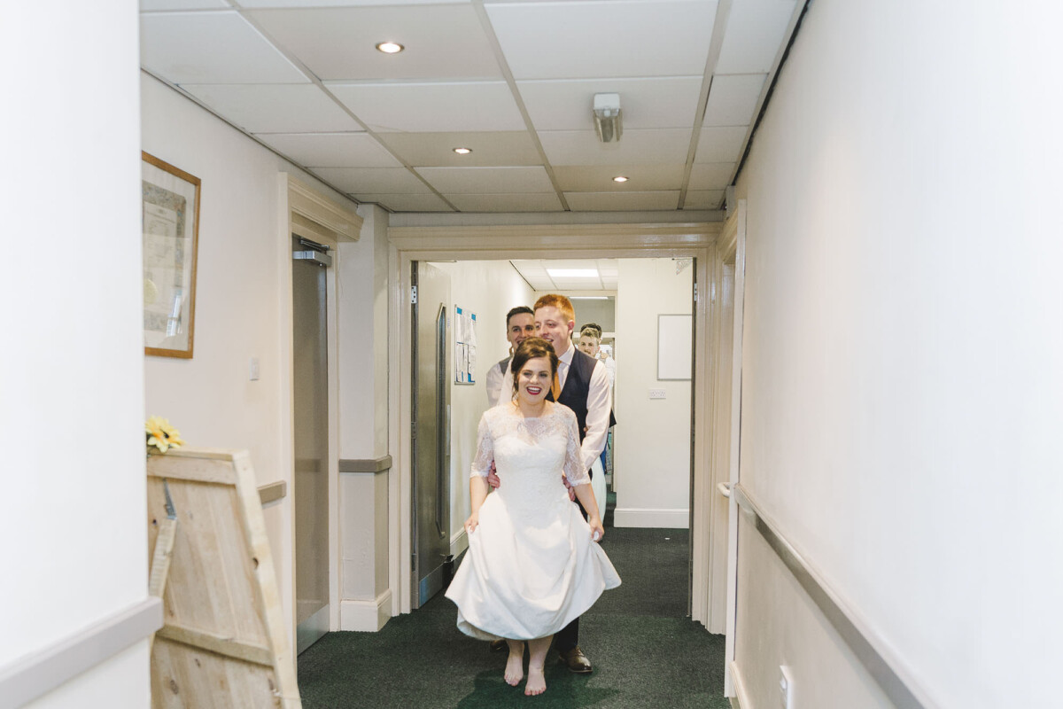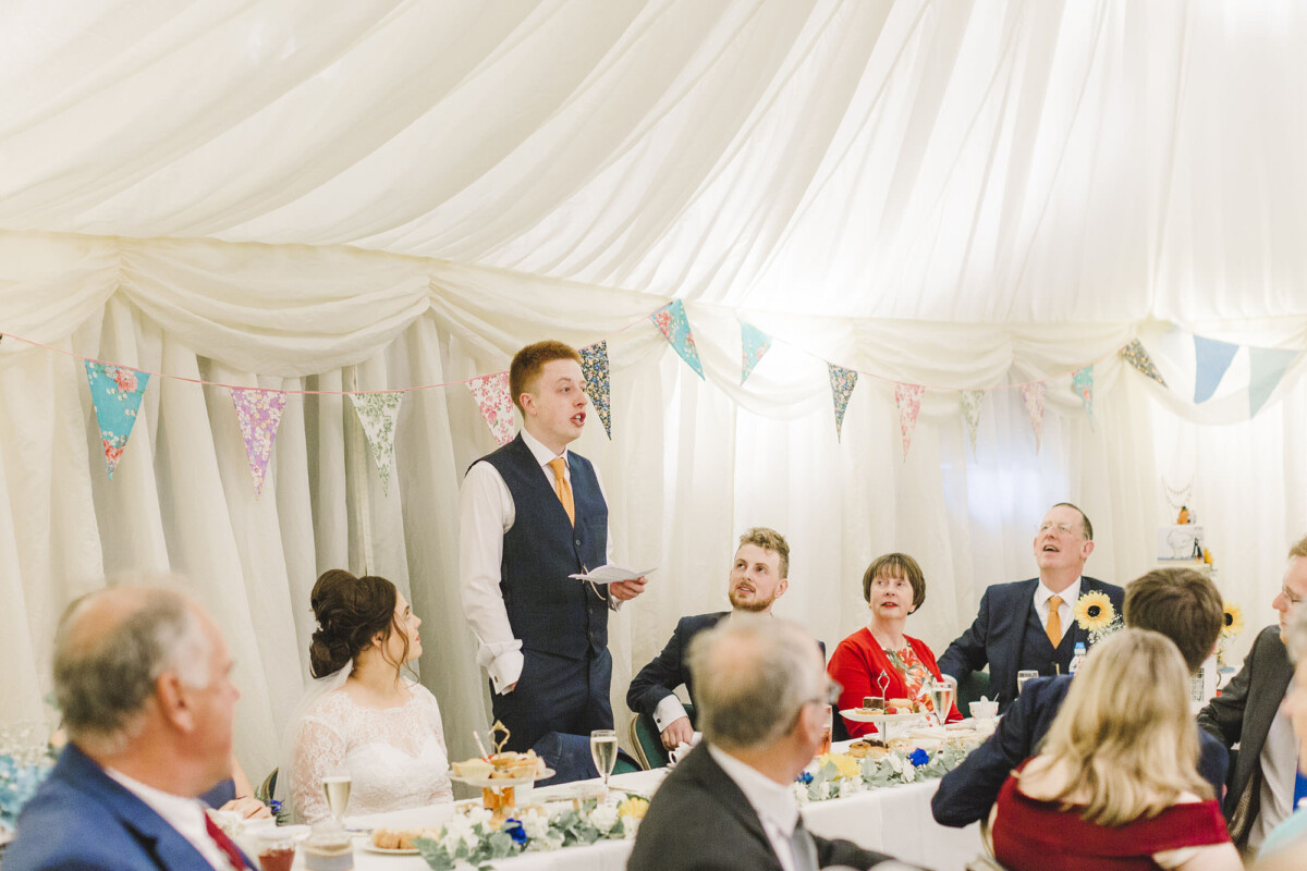 The reception was held in a village hall. The venue is perfect for weddings because the light is gorgeous, and it’s got such a fab vibe, especially the conservatory when the golden sun is glowing.
