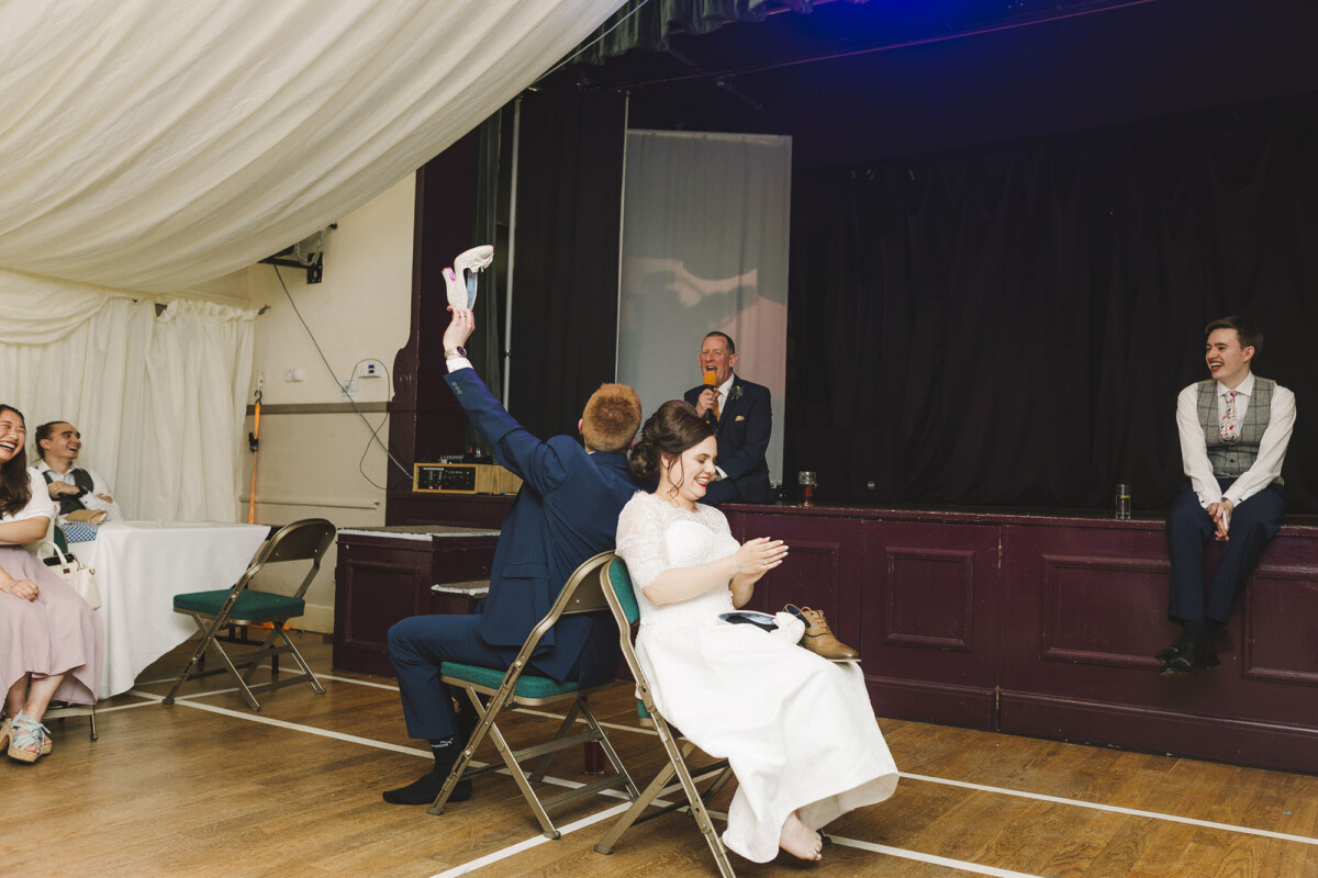 The evening ended with a quiz, which was so much fun, and everyone had a great time. The whole village hall wedding was so much fun, from the bride’s awesome dress to pizza van at the end.