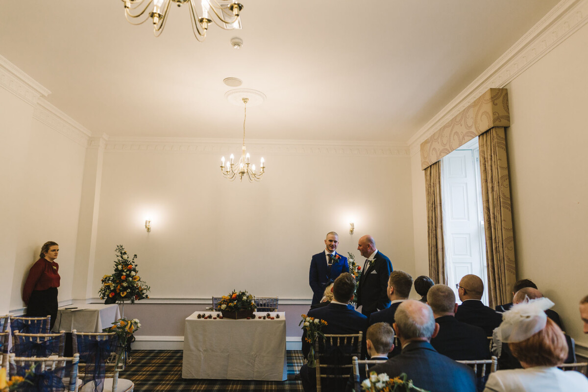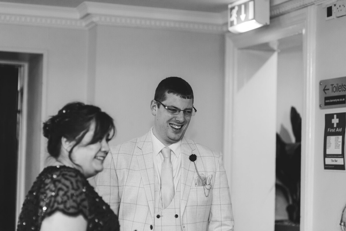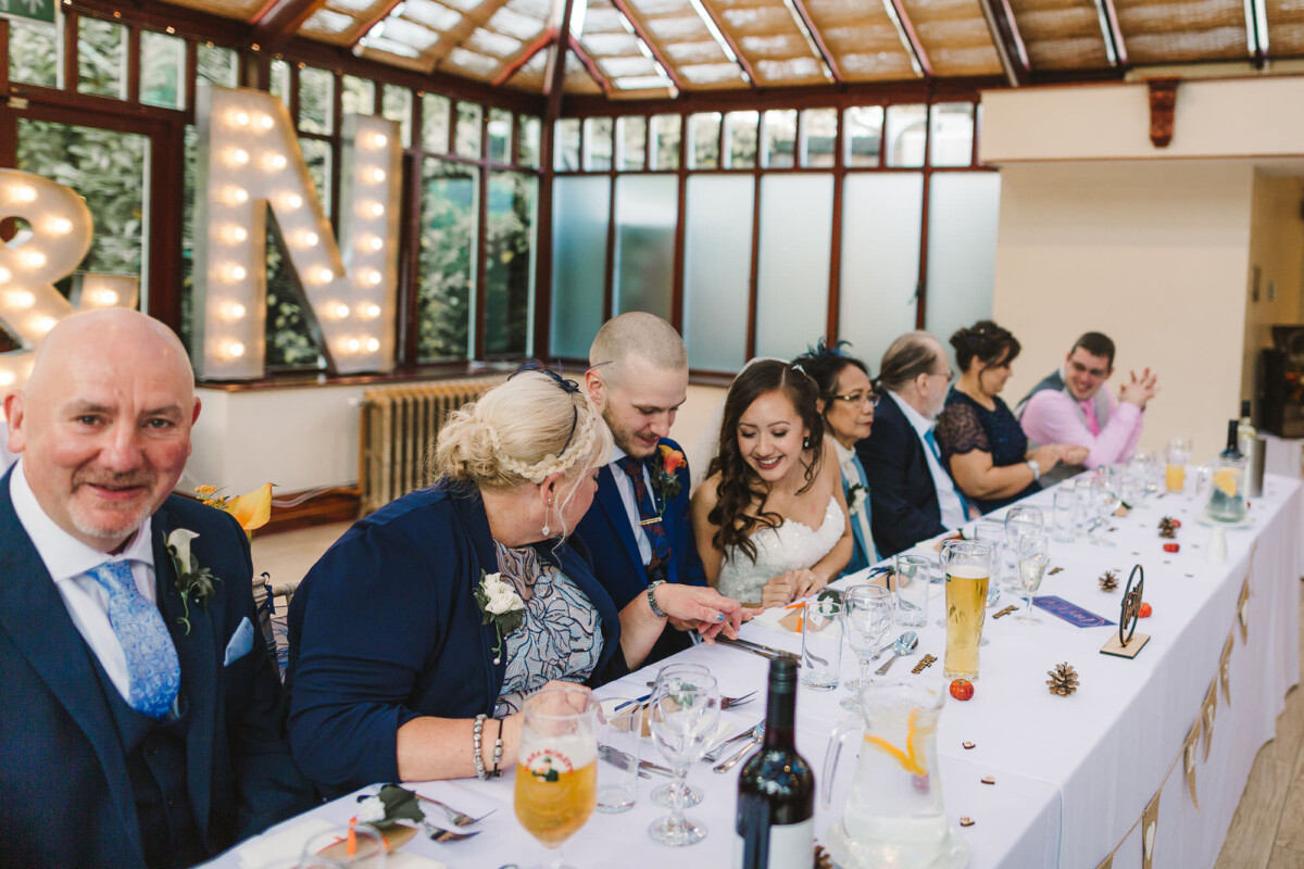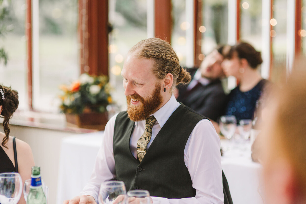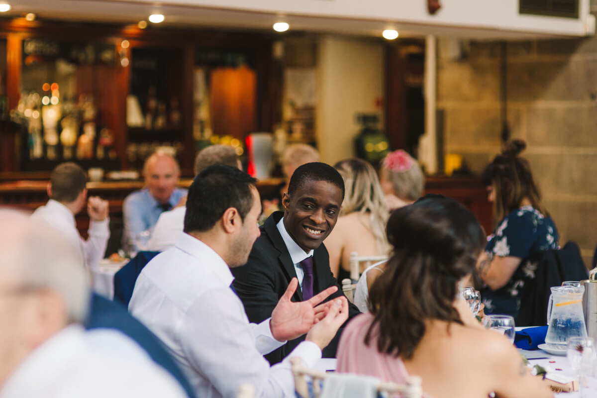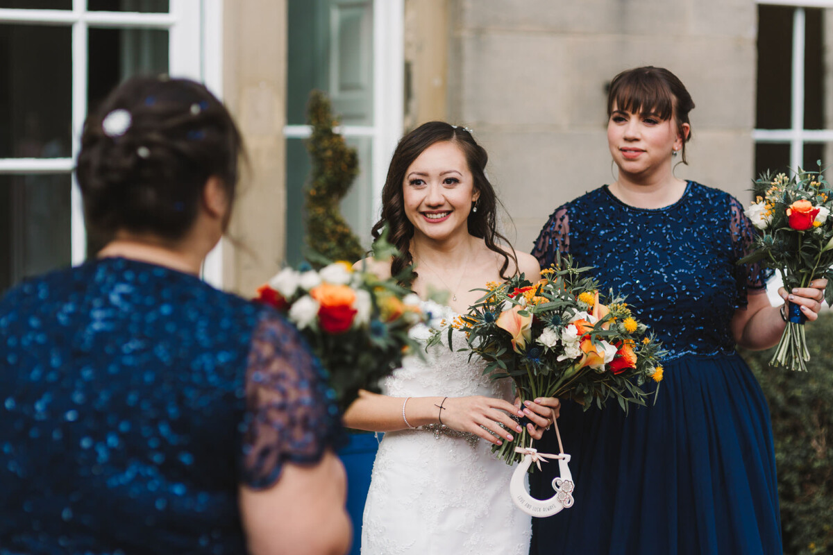 The ceremony was an intimate affair in a beautiful room at Cookridge Hall. During the ceremony, they had a beautiful reading. It was lovely. They decorated the area with lots of colours, which I loved. I love this venue because the light is gorgeous for portraits and candids. Cookridge Hall Leeds weddings are amazing because the food is absolutely delicious.