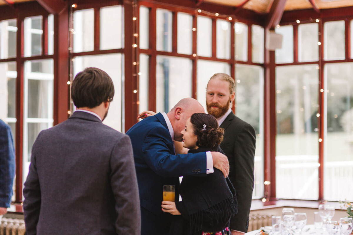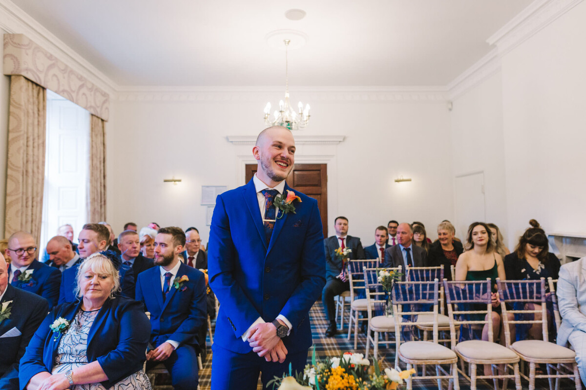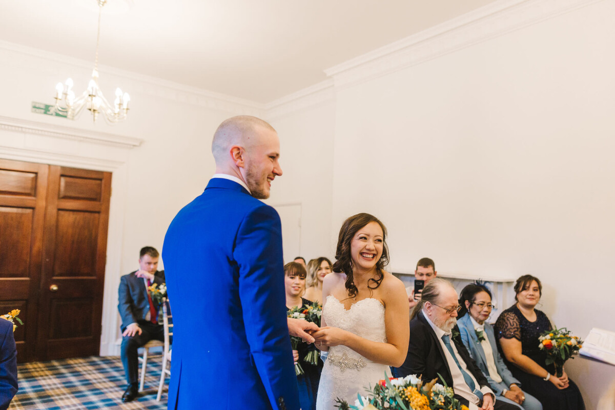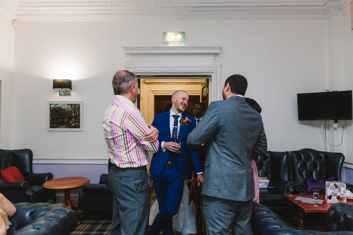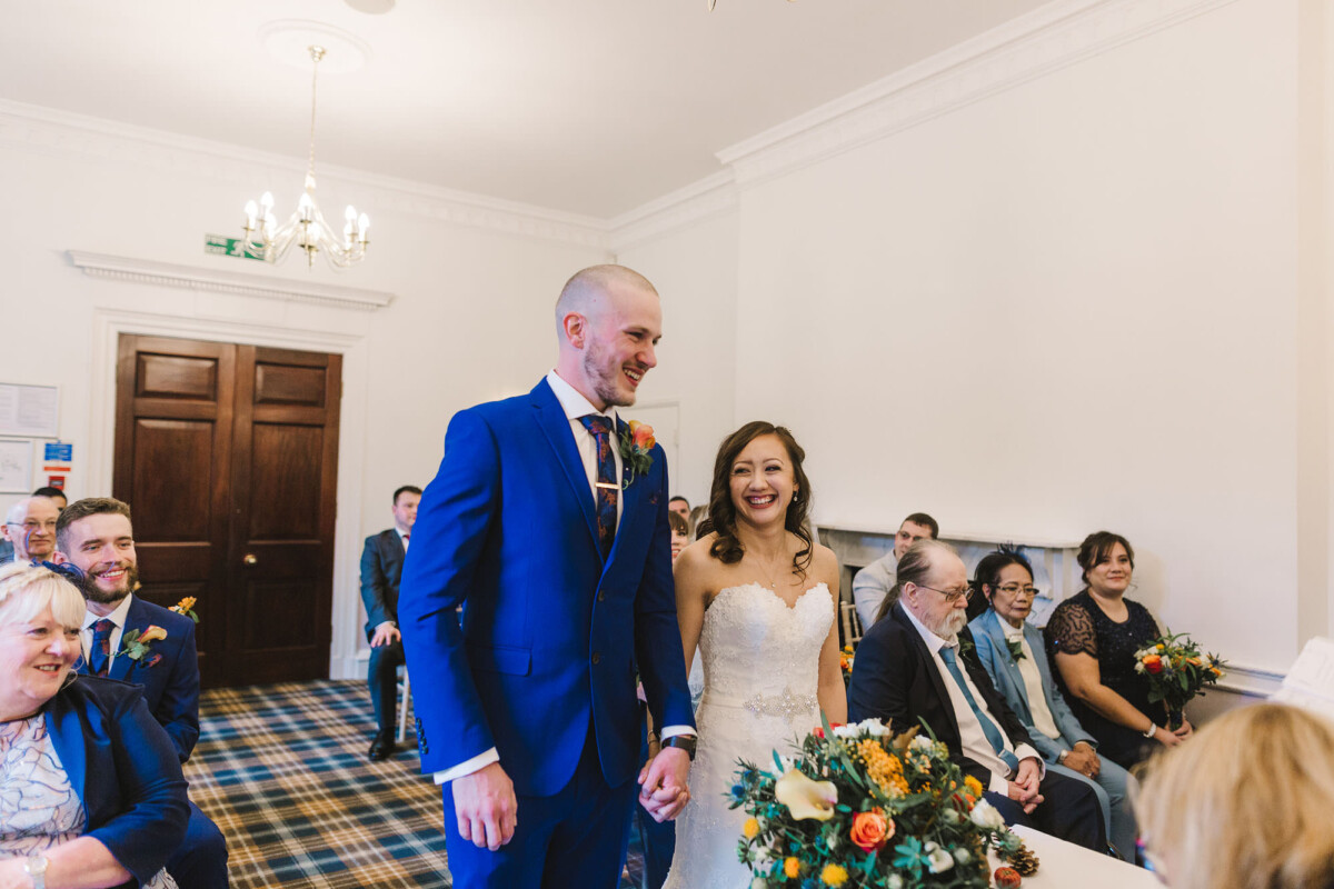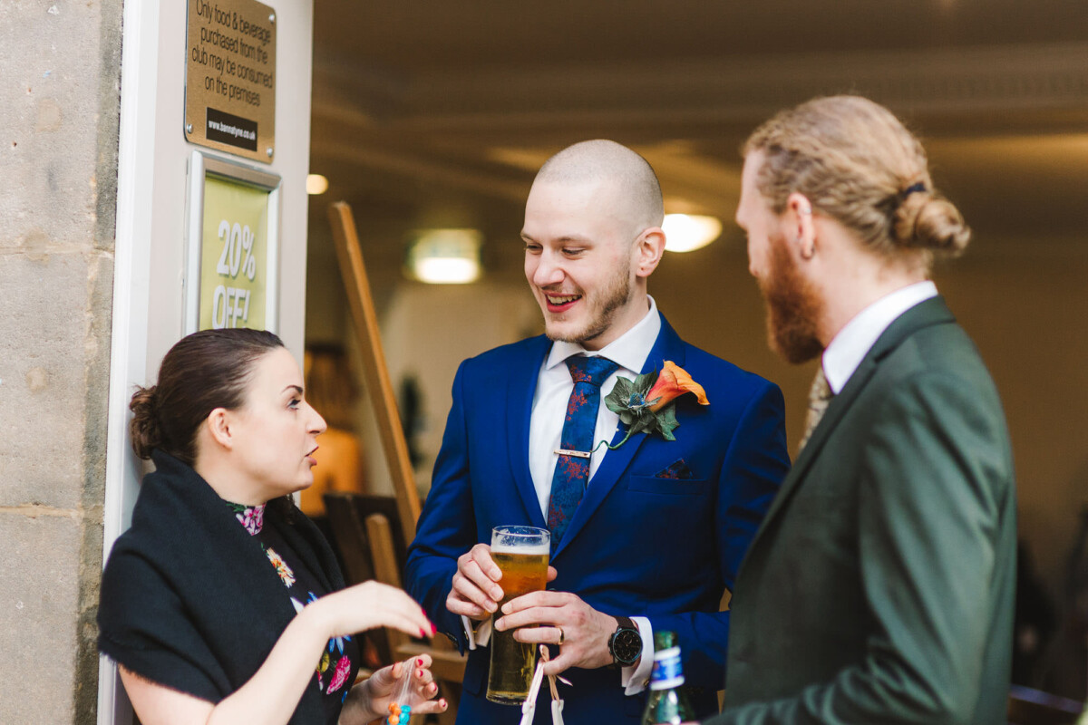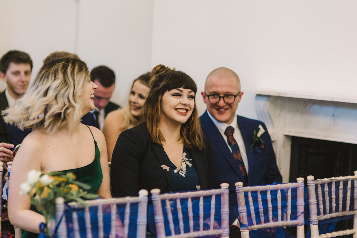 The ceremony was an intimate affair in a beautiful room at Cookridge Hall. During the ceremony, they had a beautiful reading. It was lovely. They decorated the area with lots of colours, which I loved. I love this venue because the light is gorgeous for portraits and candids. Cookridge Hall Leeds weddings are amazing because the food is absolutely delicious.