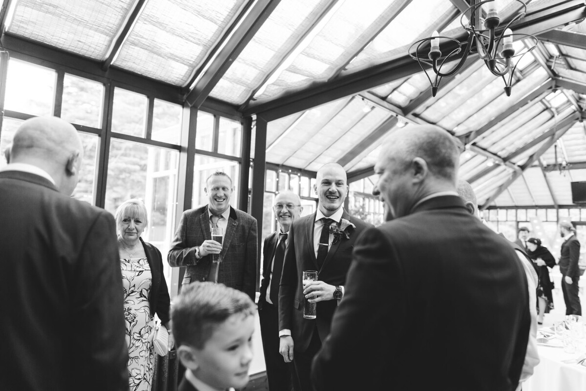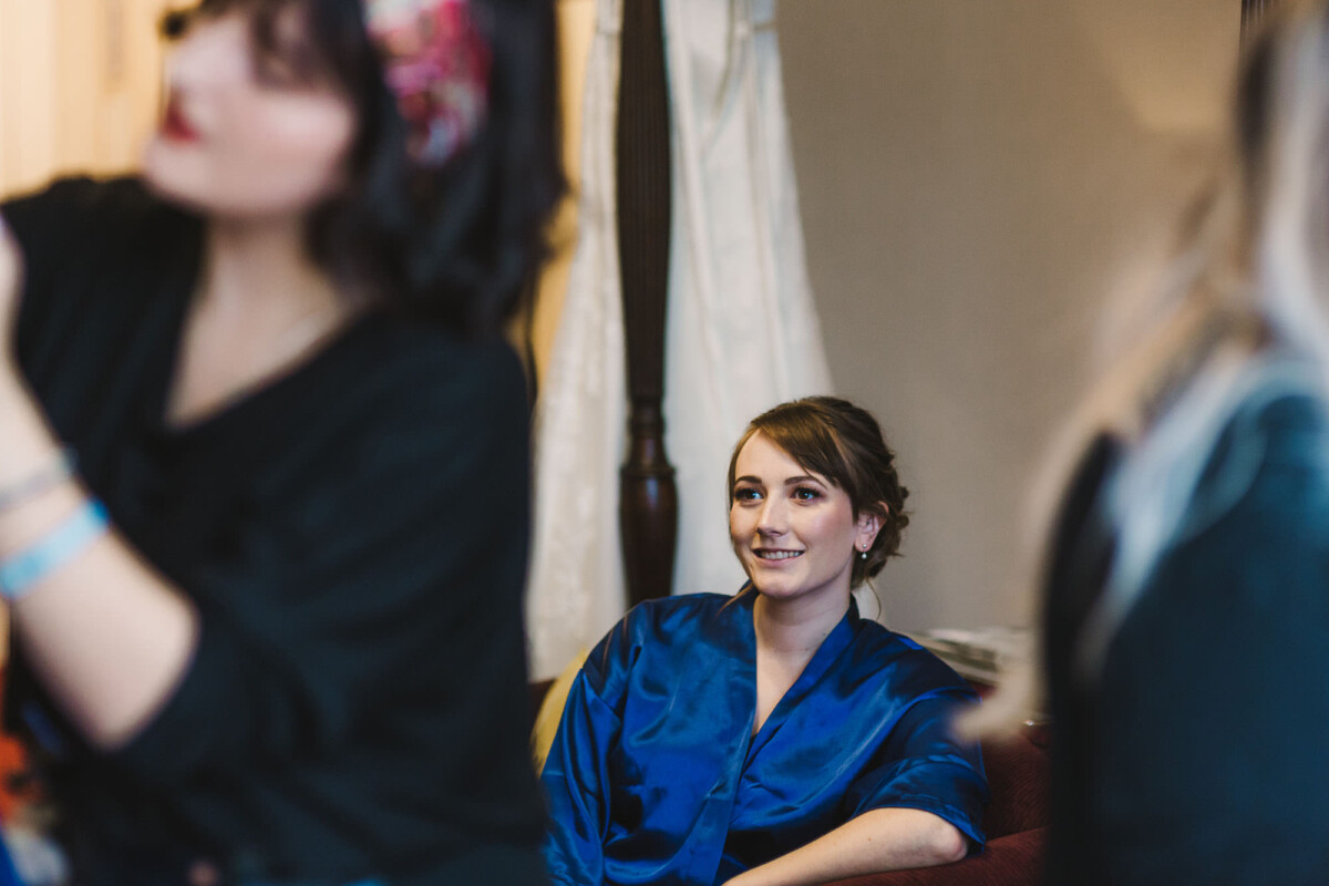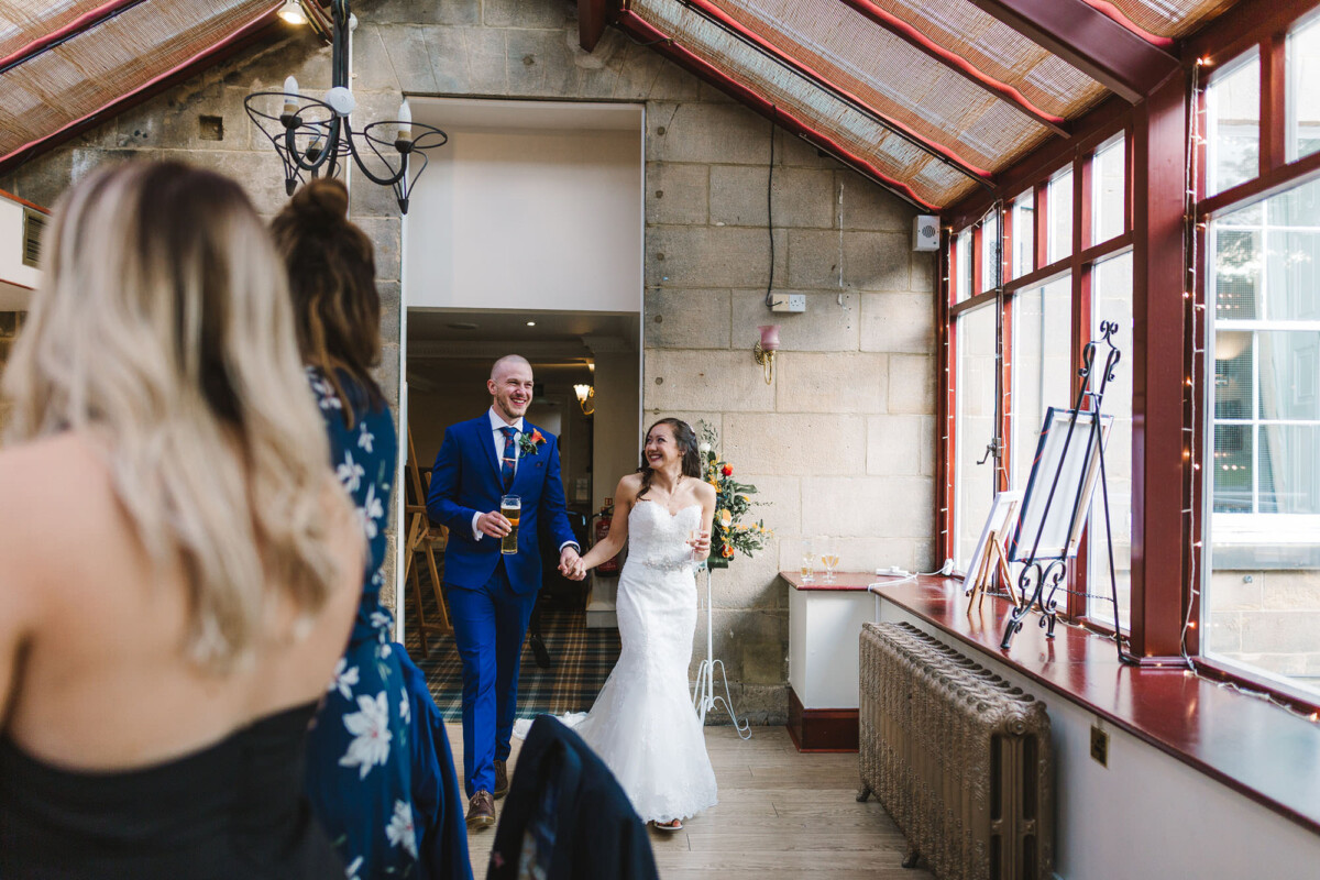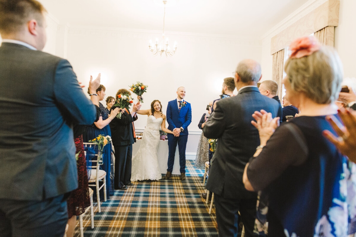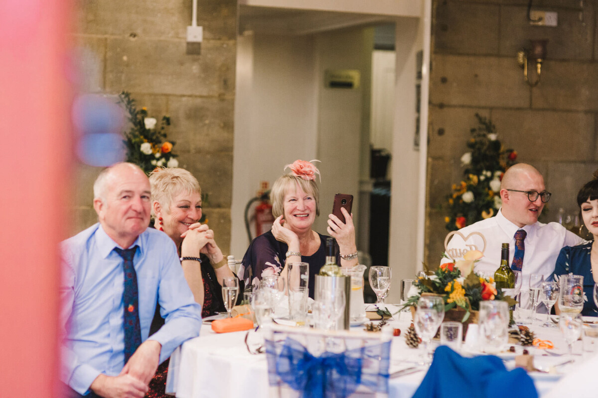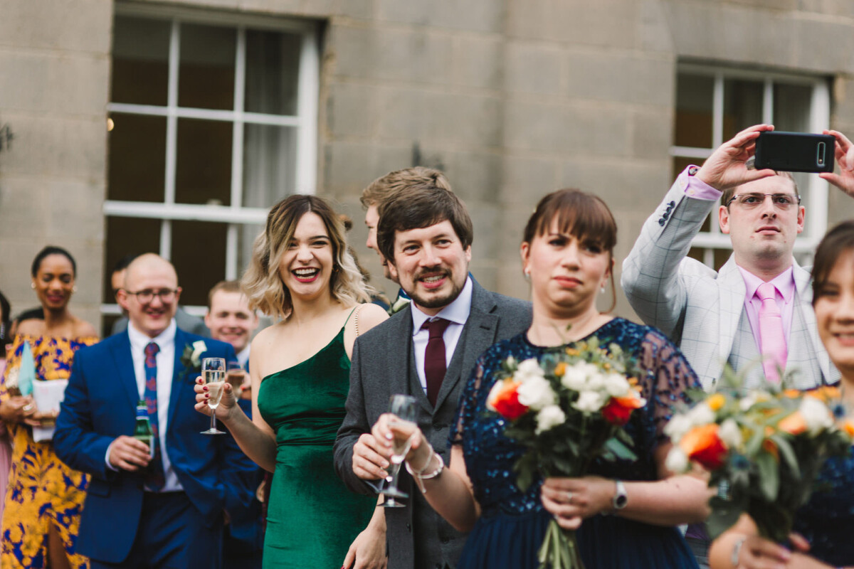 The ceremony was an intimate affair in a beautiful room at Cookridge Hall. During the ceremony, they had a beautiful reading. It was lovely. They decorated the area with lots of colours, which I loved. I love this venue because the light is gorgeous for portraits and candids. Cookridge Hall Leeds weddings are amazing because the food is absolutely delicious.