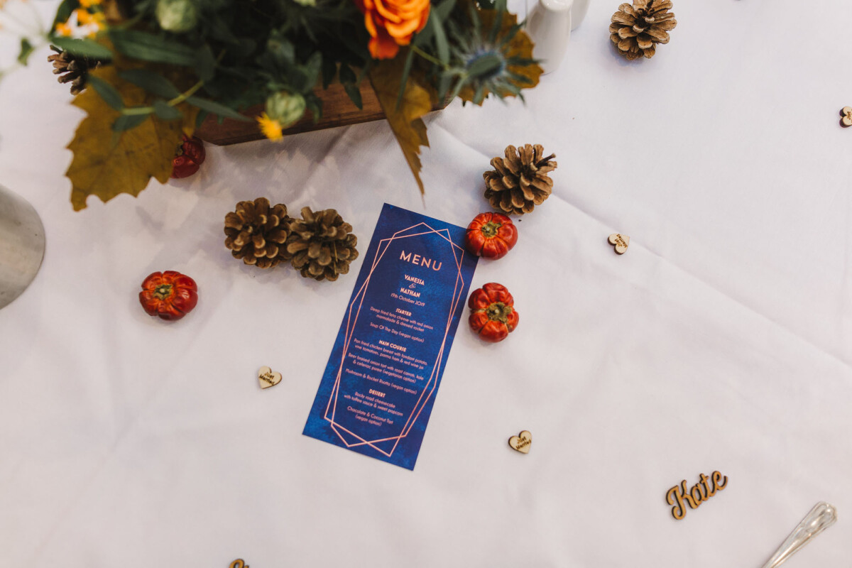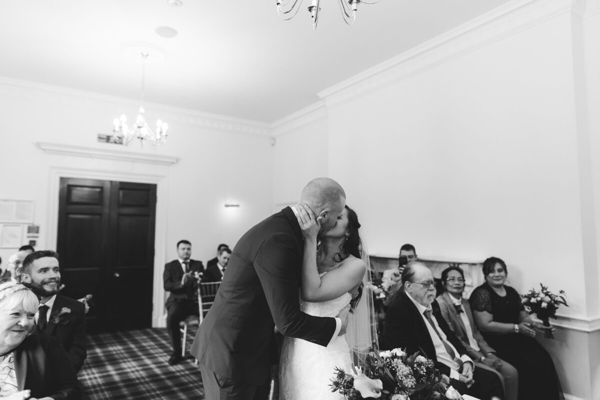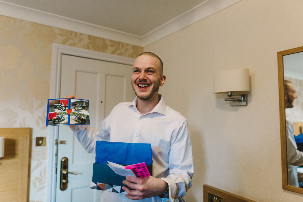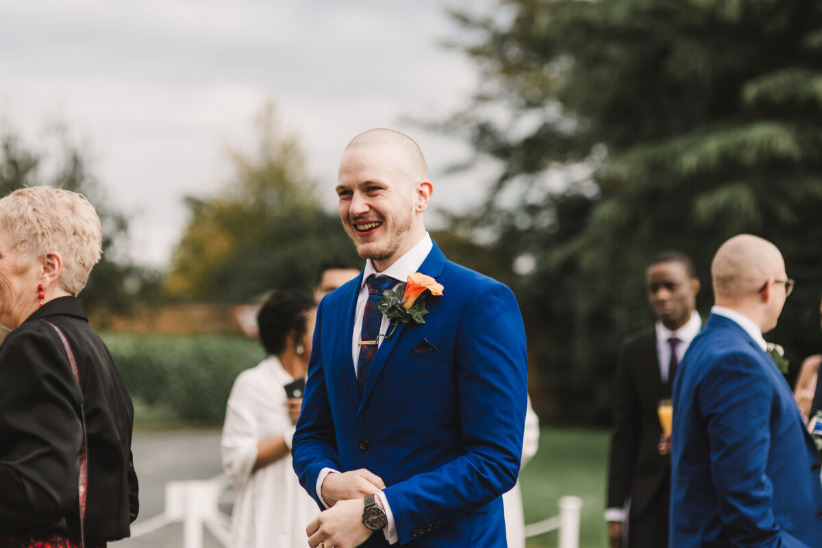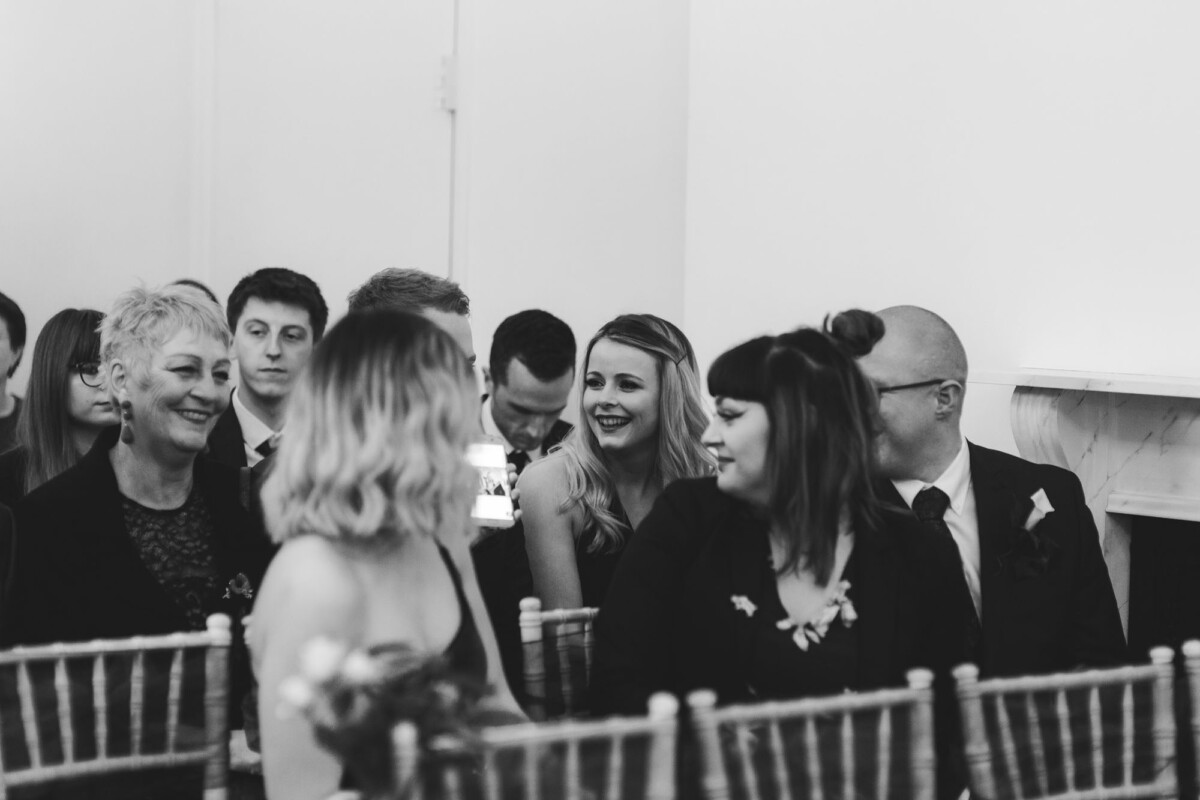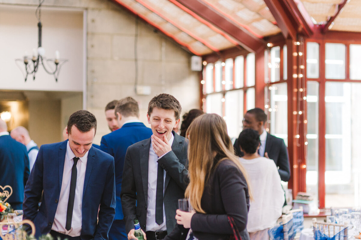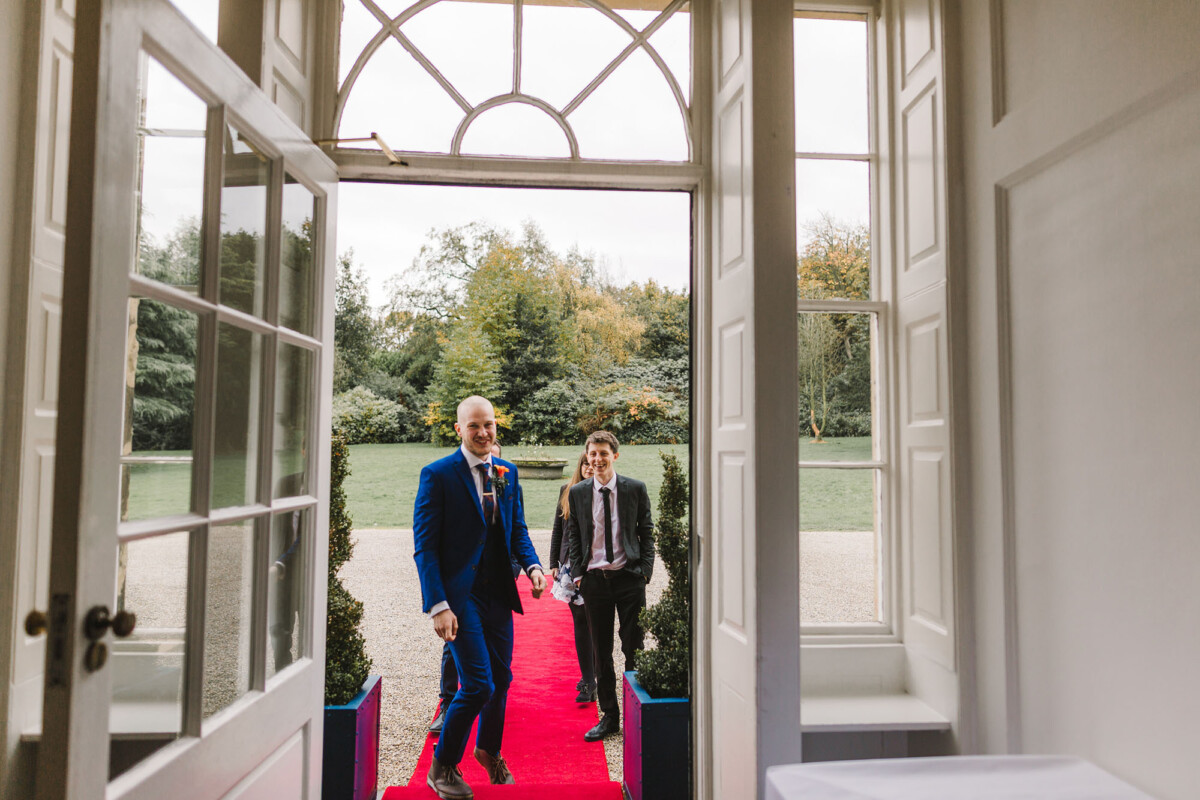 The ceremony was an intimate affair in a beautiful room at Cookridge Hall. During the ceremony, they had a beautiful reading. It was lovely. They decorated the area with lots of colours, which I loved. I love this venue because the light is gorgeous for portraits and candids. Cookridge Hall Leeds weddings are amazing because the food is absolutely delicious.