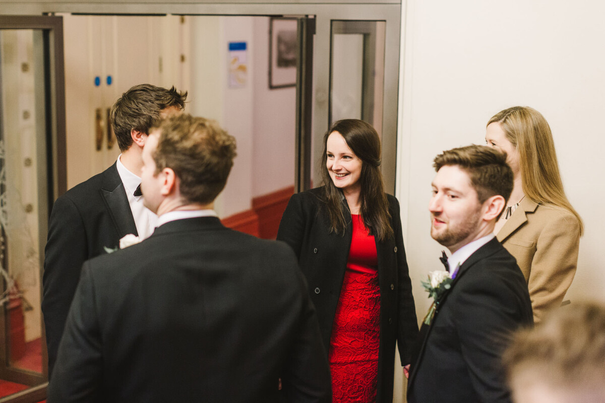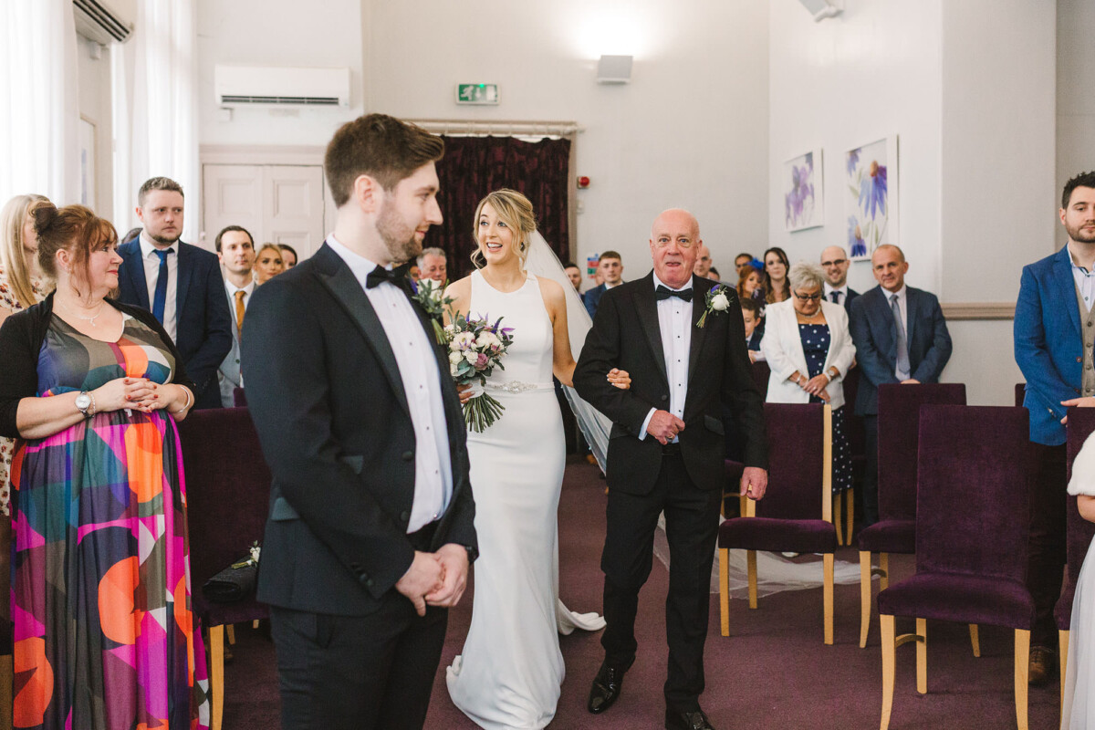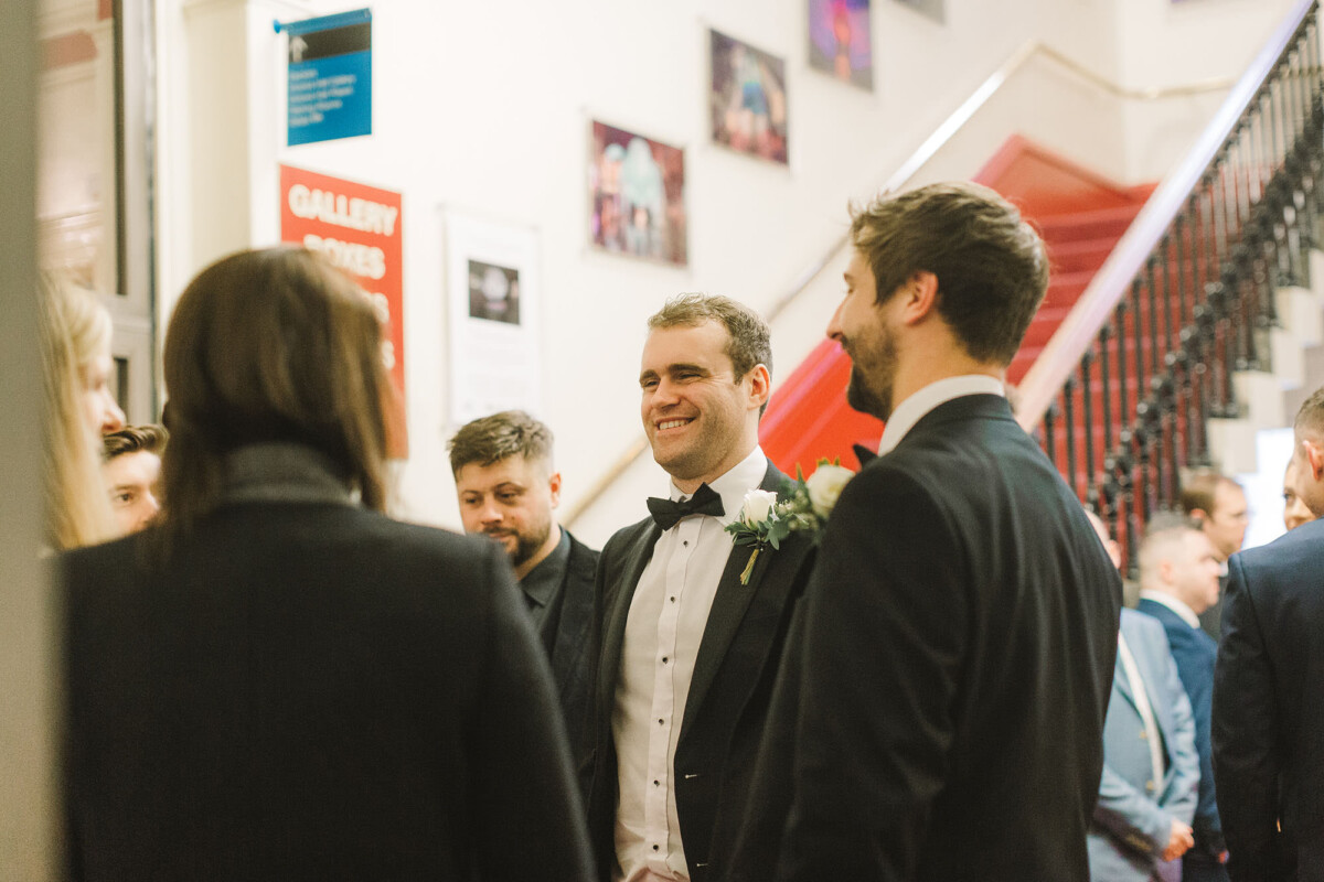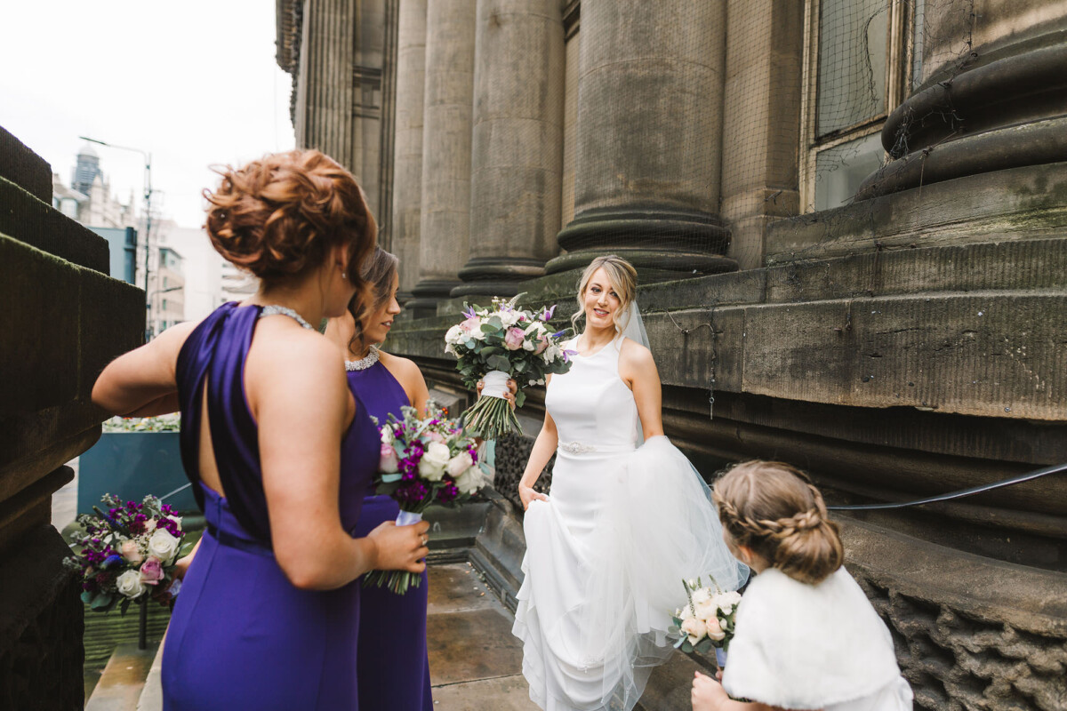 The ceremony took place at Leeds Town Hall, with Daniel arriving by foot after having a pre-wedding tipple at one of the local bars (and who can blame him?). Olwen was a tad early so had to hide until the guests and Daniel had gone through to the ceremony room. The ceremony itself was full of laughs (as you can see from the photos) and at the end we headed straight out to the stairs at the front of Leeds Town Hall. We whizzed through a few group shots and then the guests went ahead to The Iberica whilst Olwen and Daniel had a five-minute breather (and I grabbed some portraits of them).