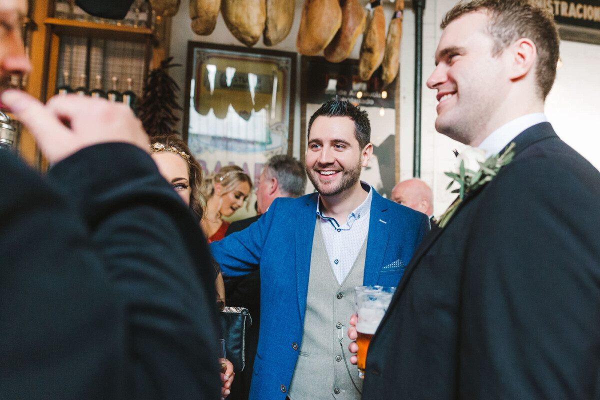 I had never been to the Iberica before and had NO IDEA just how stunning it was going to be! Please, please if you’re planning a Leeds City Centre Wedding, go and have a look, and book and then book me so I can shoot there again! Honestly, it has such a wow factor with all the vintage features, high ceiling and beautiful colour palette. Even if you’re not planning a wedding, just go – you will not be disappointed. The tapas was flowing, and flowing, and flowing (SO much food!) and the staff are amazing. There were a few hilarious speeches that had the guests were howling with laughter (the Irish have a brilliant sense of humour!).