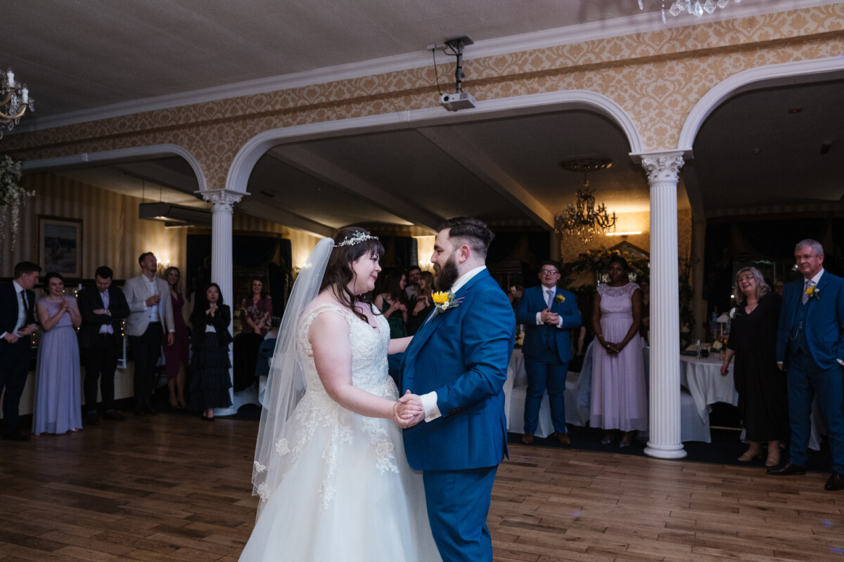 The couple had a drinks reception in the afternoon, and music in the evening. For dinner they had a slap up meal, and the first dance was a good old traditional wedding shuffle. They finished off the evening with lots of dancing.