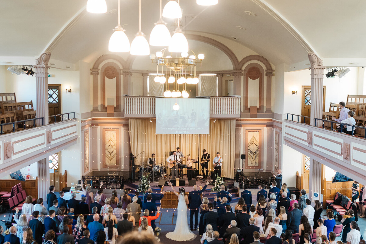 The ceremony was a beautiful service in the couple’s home church. During the ceremony, they had several beautiful readings from friends and family. It was such a personal service.