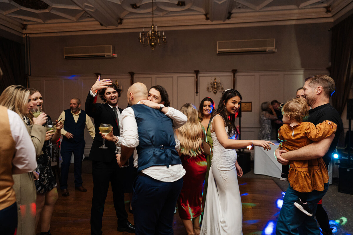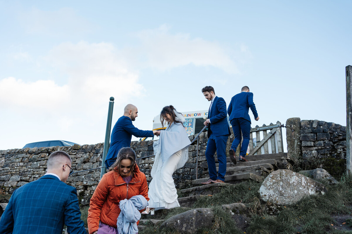 The couple had a cocktail drinks reception in the afternoon, and snook off for some photographs at Padley Gorge on the way. For dinner they had proper wedding grub, and the first dance involved the wedding party getting on the dancefloor to get the dancing going. They finished off the evening with lots of dancing.