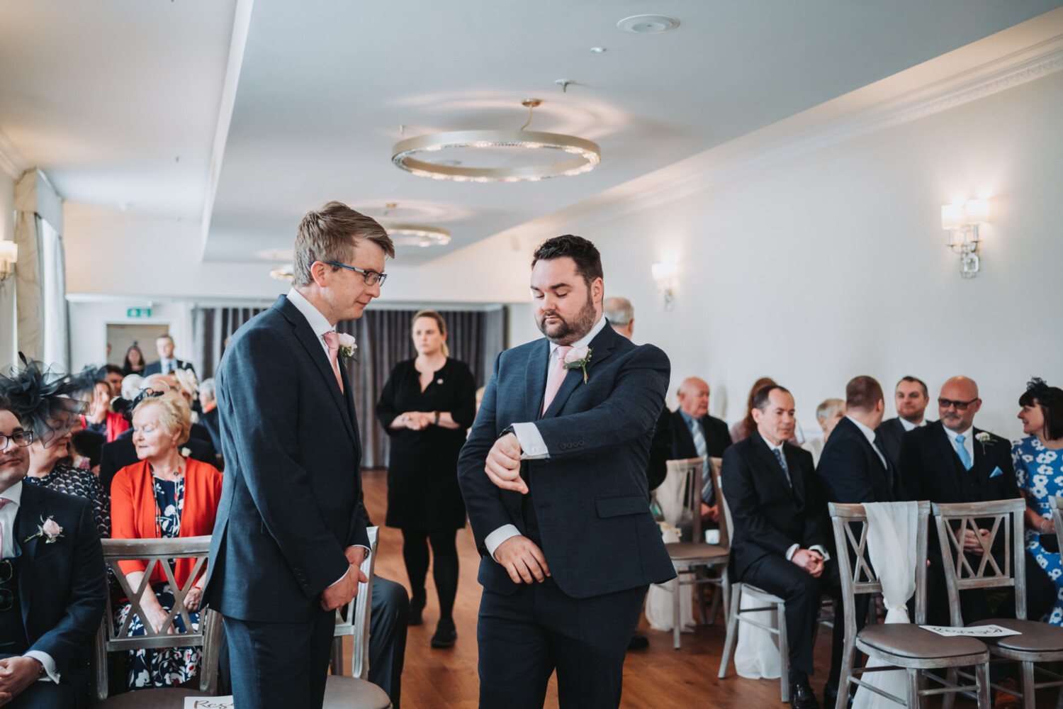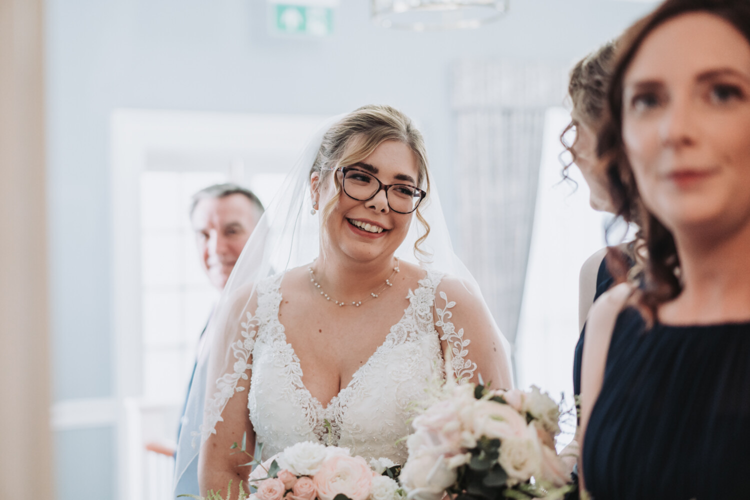 The ceremony was a gorgeous service in a beautiful room. There was a little hiccough with the music which meant Greg was left waiting in the ceremony room and Emma was waiting outside. It just made Emma’s entrance all the more special. The ceremony went swimmingly and the couple both had huge smiles on their faces as they said their vows.
