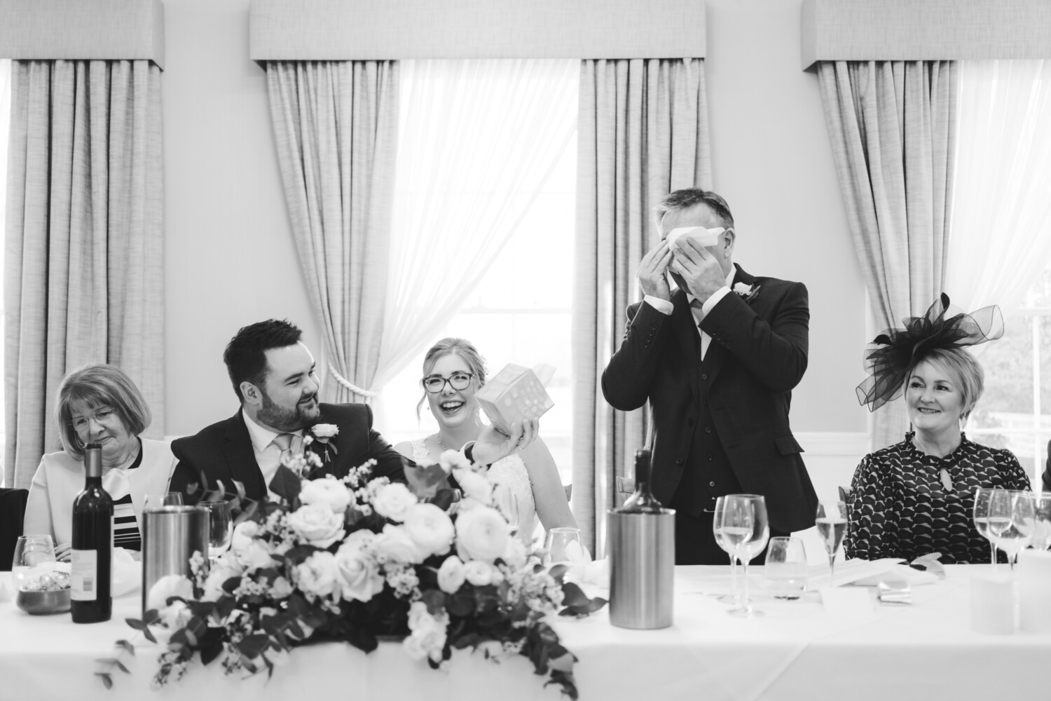 The reception was in a beautiful room at Old Palace with beautiful views out over the gardens. I love this venue because the light is gorgeous for portraits and candids. Weddings at Old Palace are amazing because the location is right on the river too. They had a beautiful meal followed by some brilliant speeches. Emma’s mum was ready with the tissues when her Dad got a bit teary.