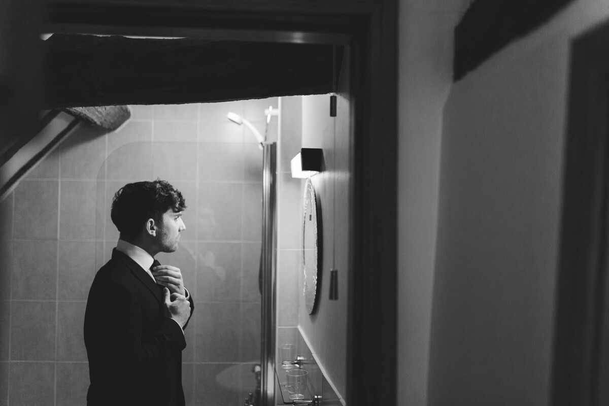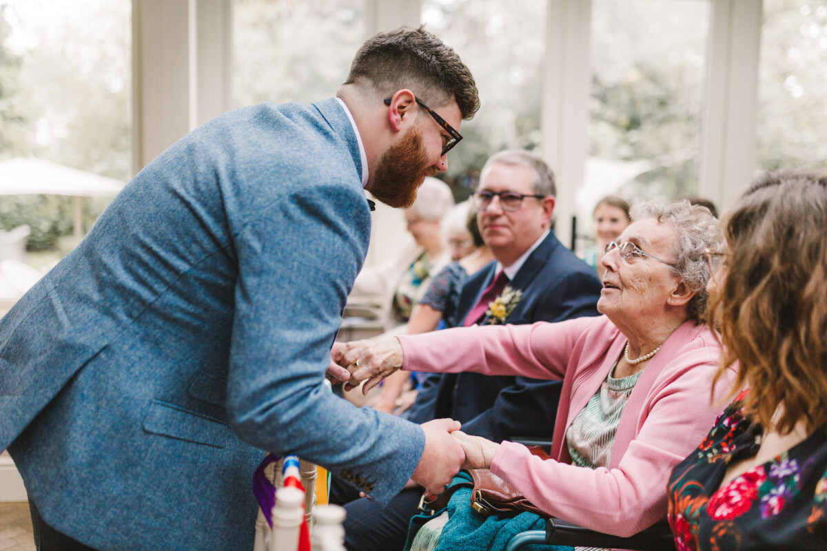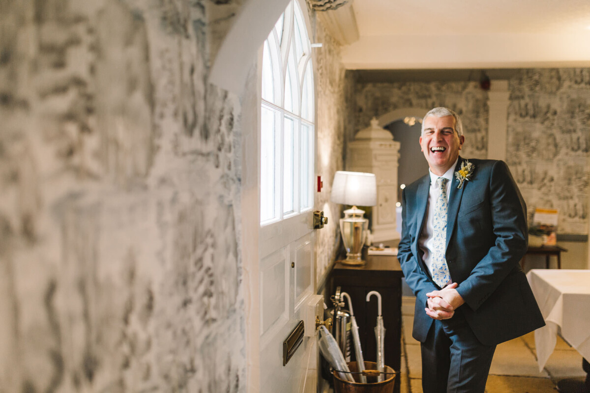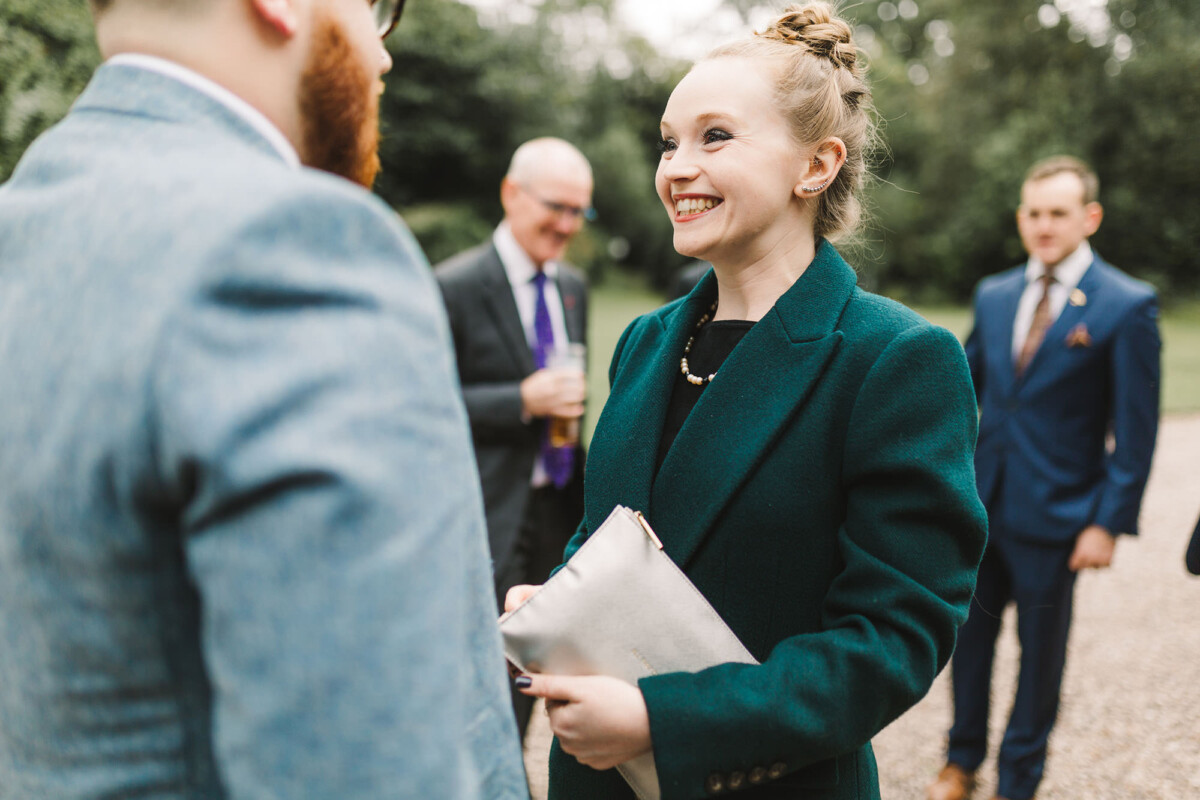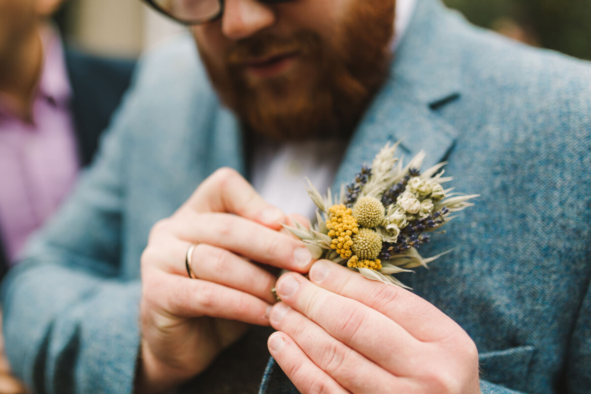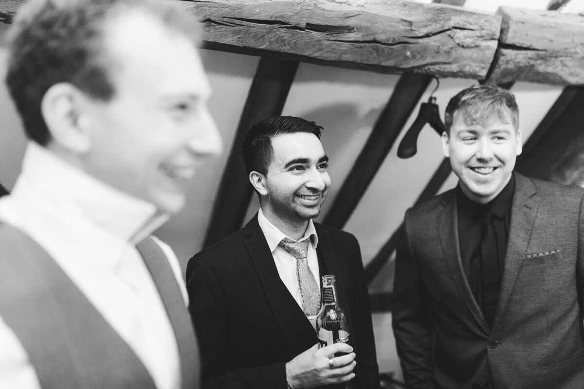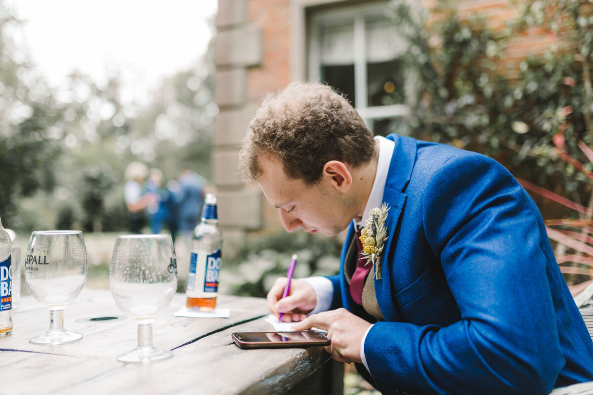 Emily and Tom were both able to get ready at their venue, The Old Rectory House in Redditch. Emily wore a beautiful dress with grey tones and lace. She mentioned how her amazing seamstress (details below) did such a brilliant job of making sure it was a perfect fit. Emily’s friend and bridesmaid did her make-up, which was just so lovely! It was such a chilled morning with plenty of time to chill once everyone was ready. Tom wore a tweed suit and looked very dapper. There was a moment when Emily could see him from an upstairs window and couldn’t stop staring at him.