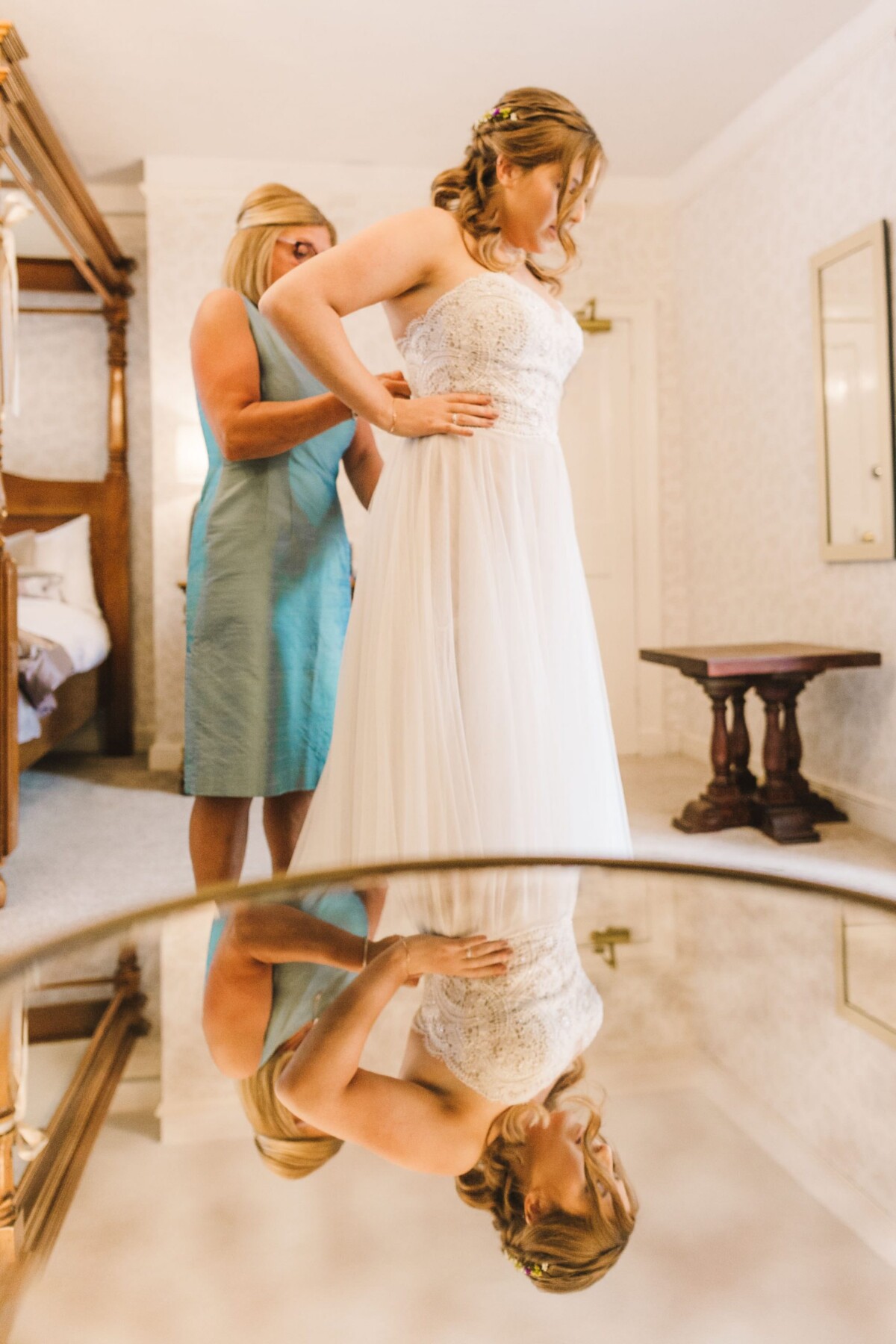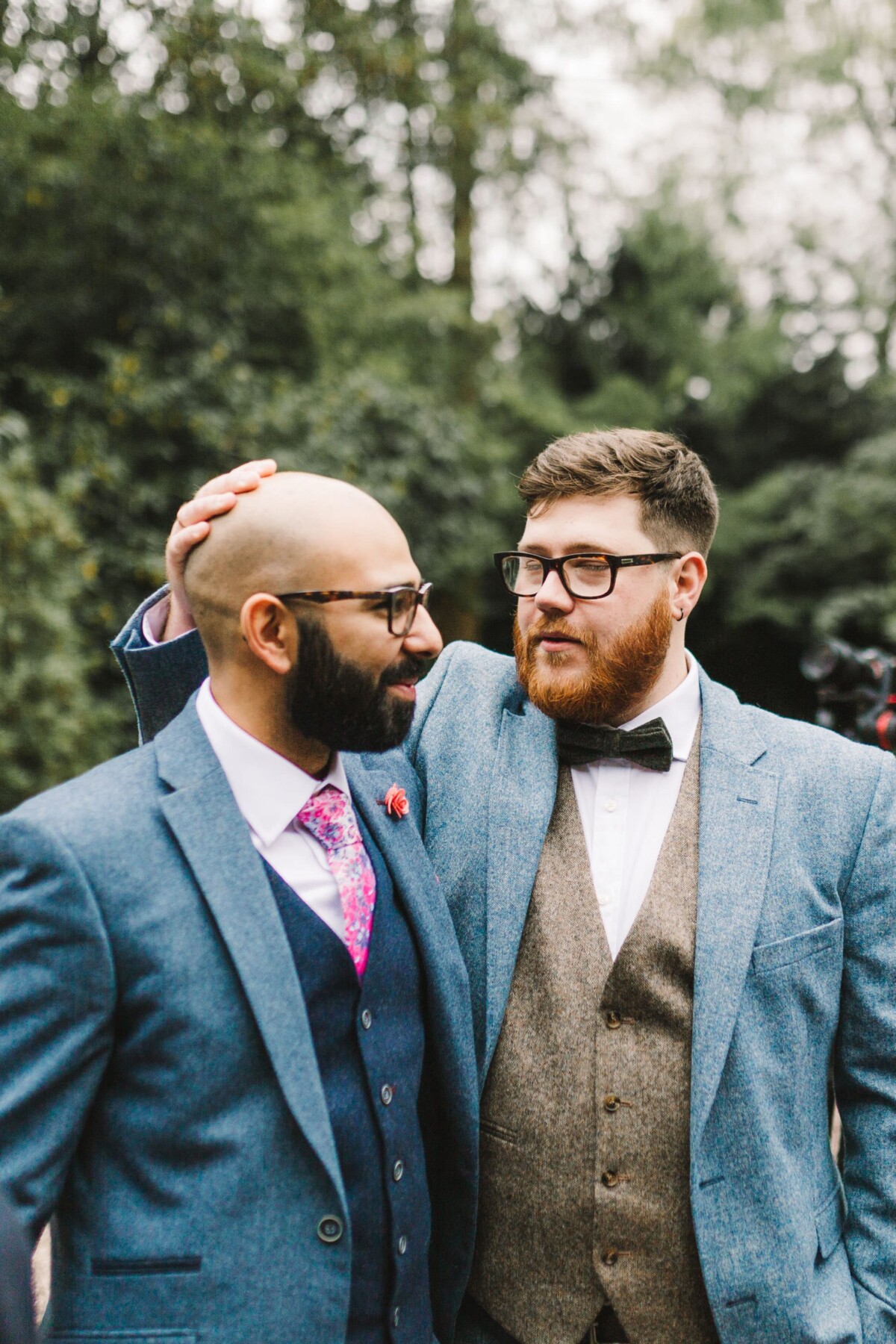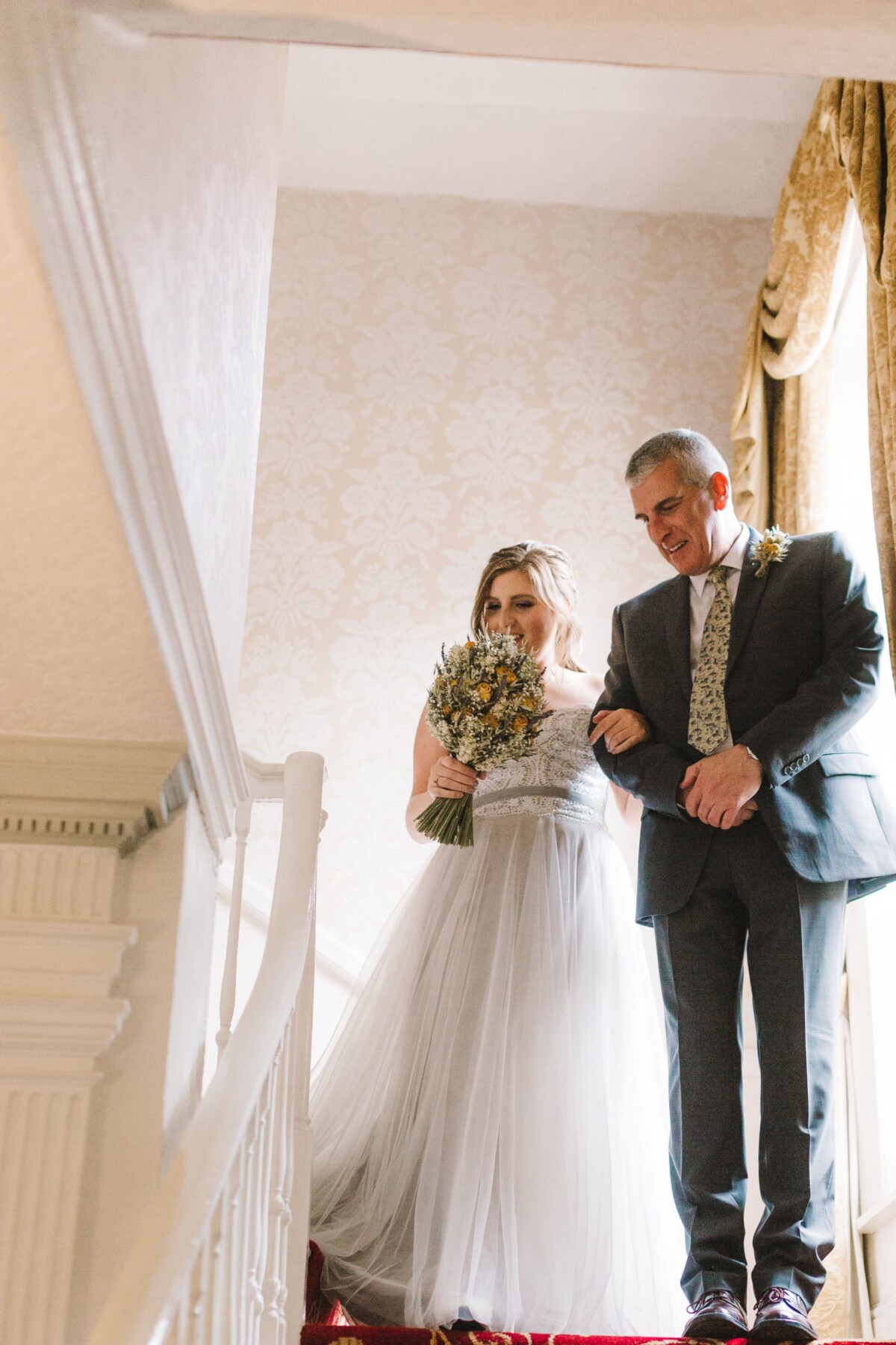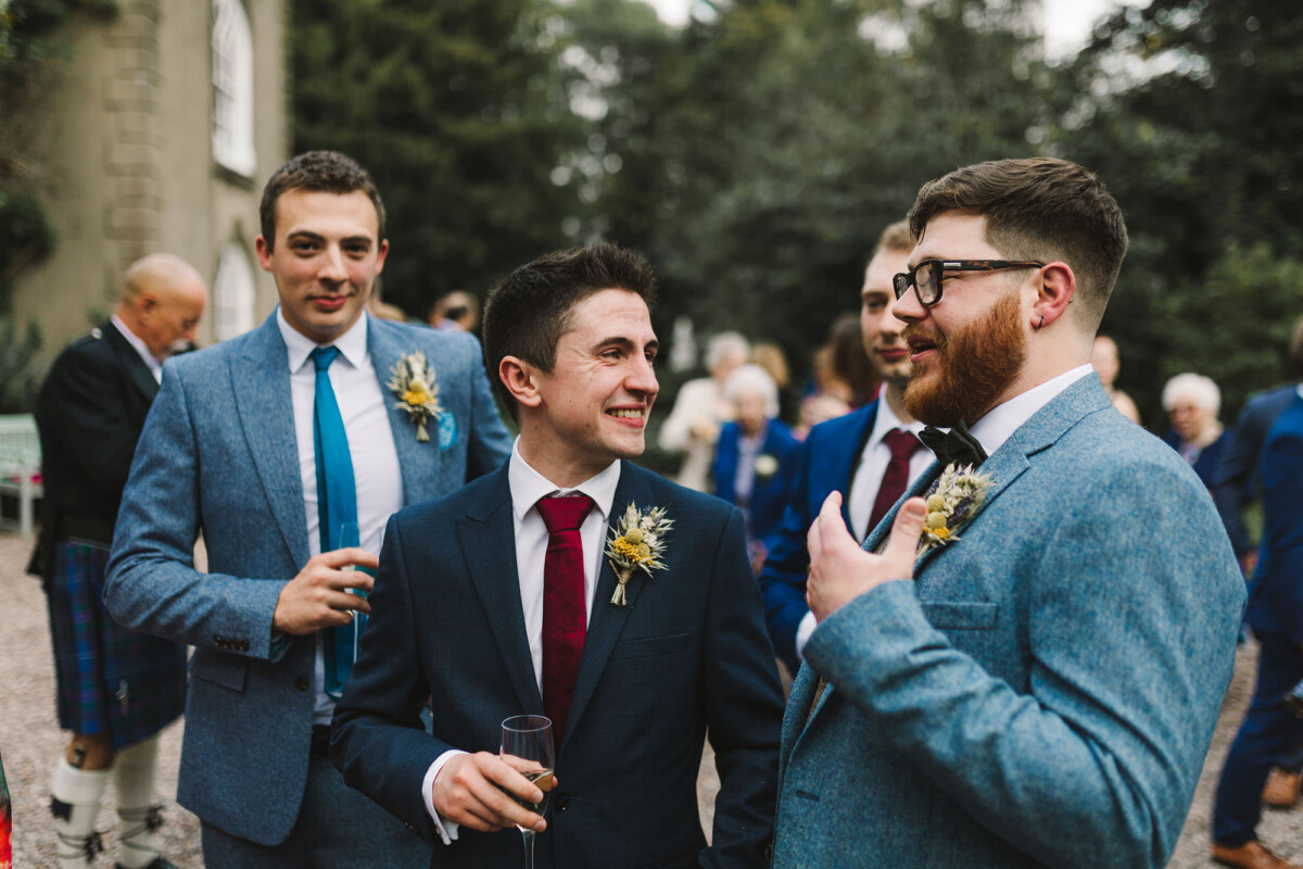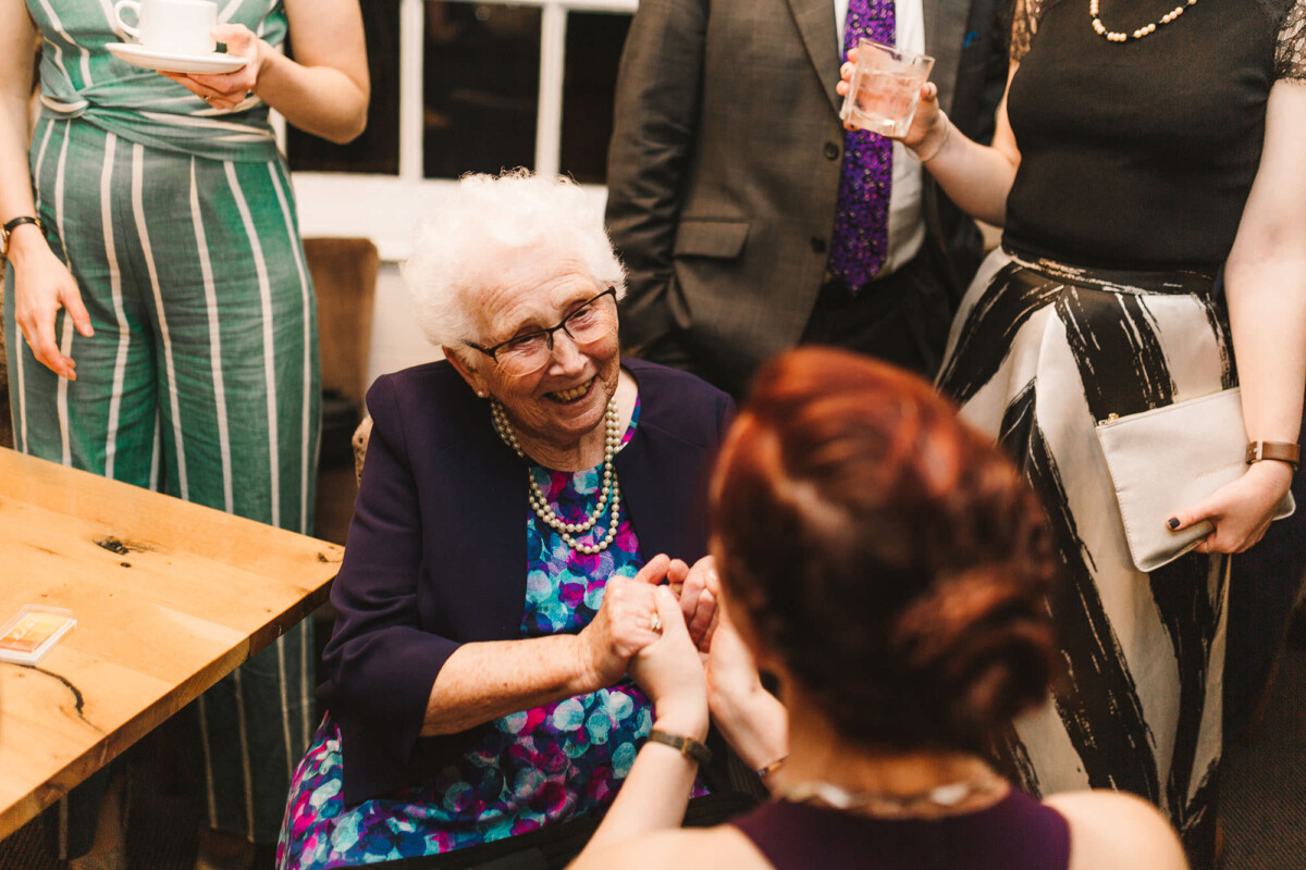 Emily and Tom were both able to get ready at their venue, The Old Rectory House in Redditch. Emily wore a beautiful dress with grey tones and lace. She mentioned how her amazing seamstress (details below) did such a brilliant job of making sure it was a perfect fit. Emily’s friend and bridesmaid did her make-up, which was just so lovely! It was such a chilled morning with plenty of time to chill once everyone was ready. Tom wore a tweed suit and looked very dapper. There was a moment when Emily could see him from an upstairs window and couldn’t stop staring at him.