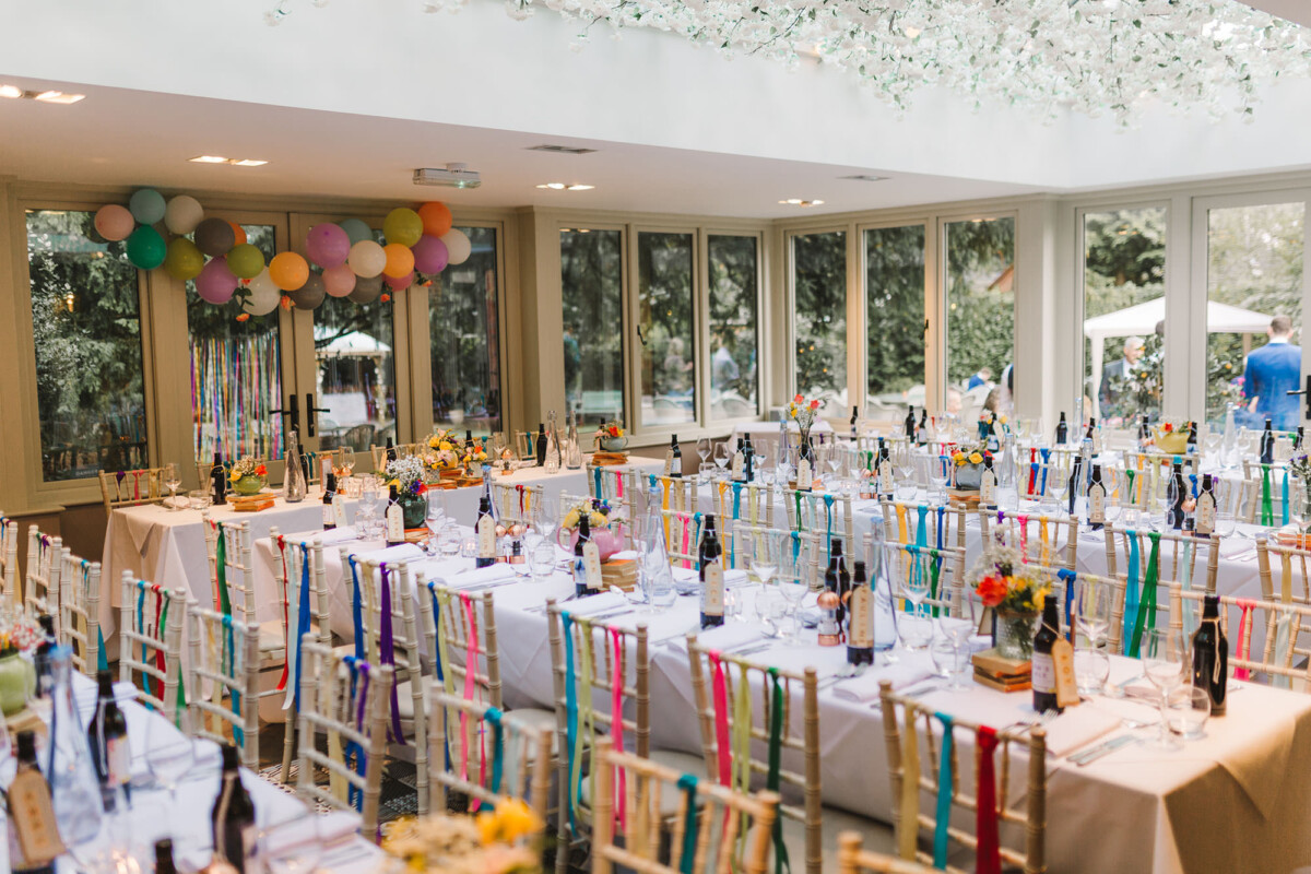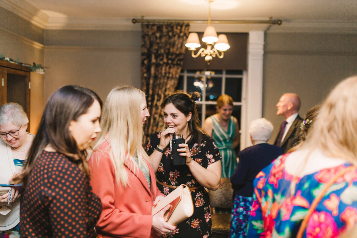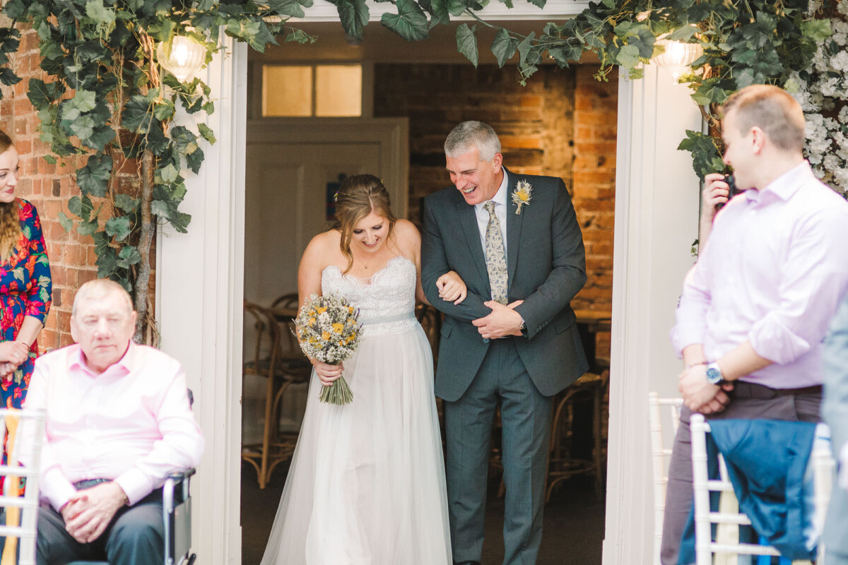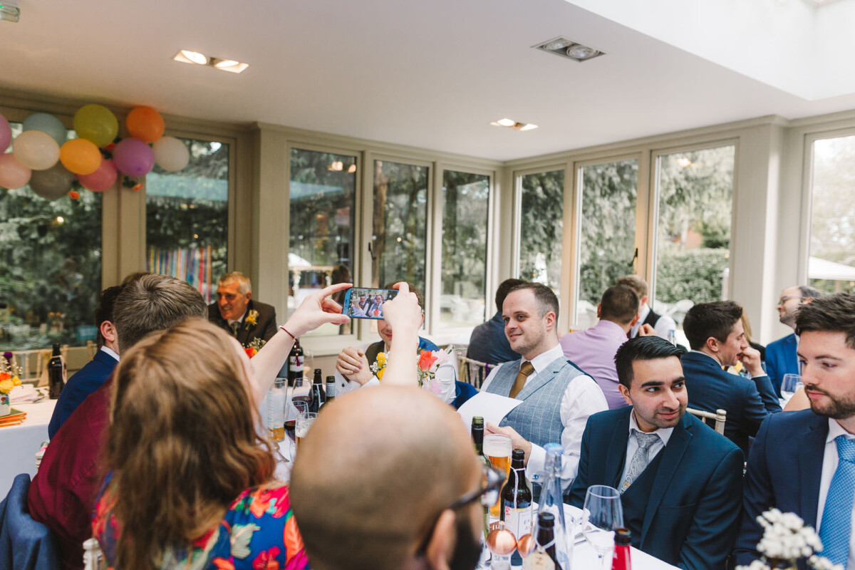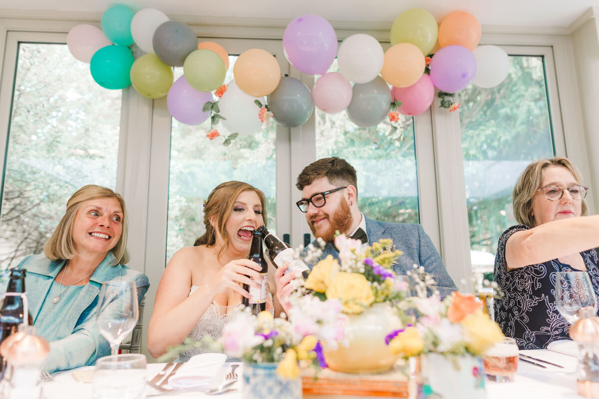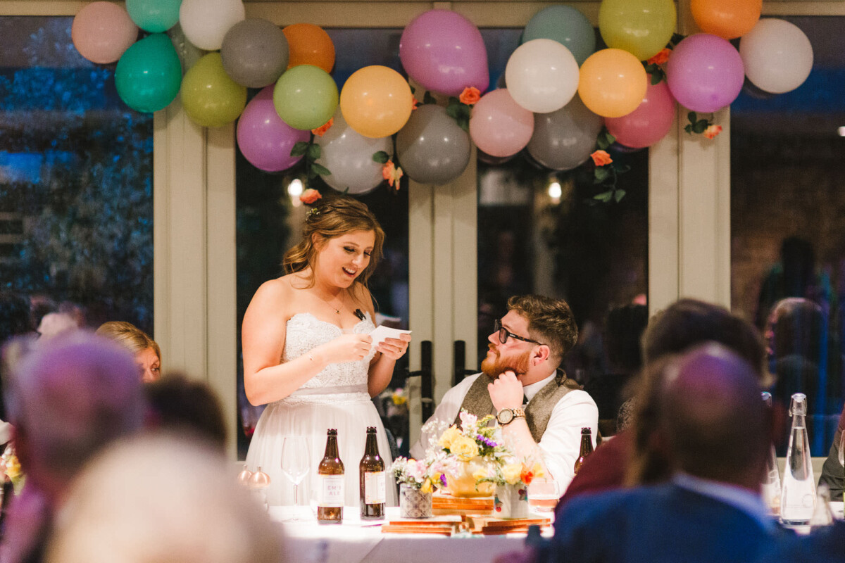 The ceremony took place in the orangery. Outdoor weddings are possible at The Old Rectory House in the summer, but the orangery is just as lovely. It looks out of the garden and the windows let in so much light. Emily had decorated it with bright coloured ribbons, too, which looked amazing. Emily cried down the aisle, and the tears carried on in the ceremony. There were plenty of lols and squeals throughout.