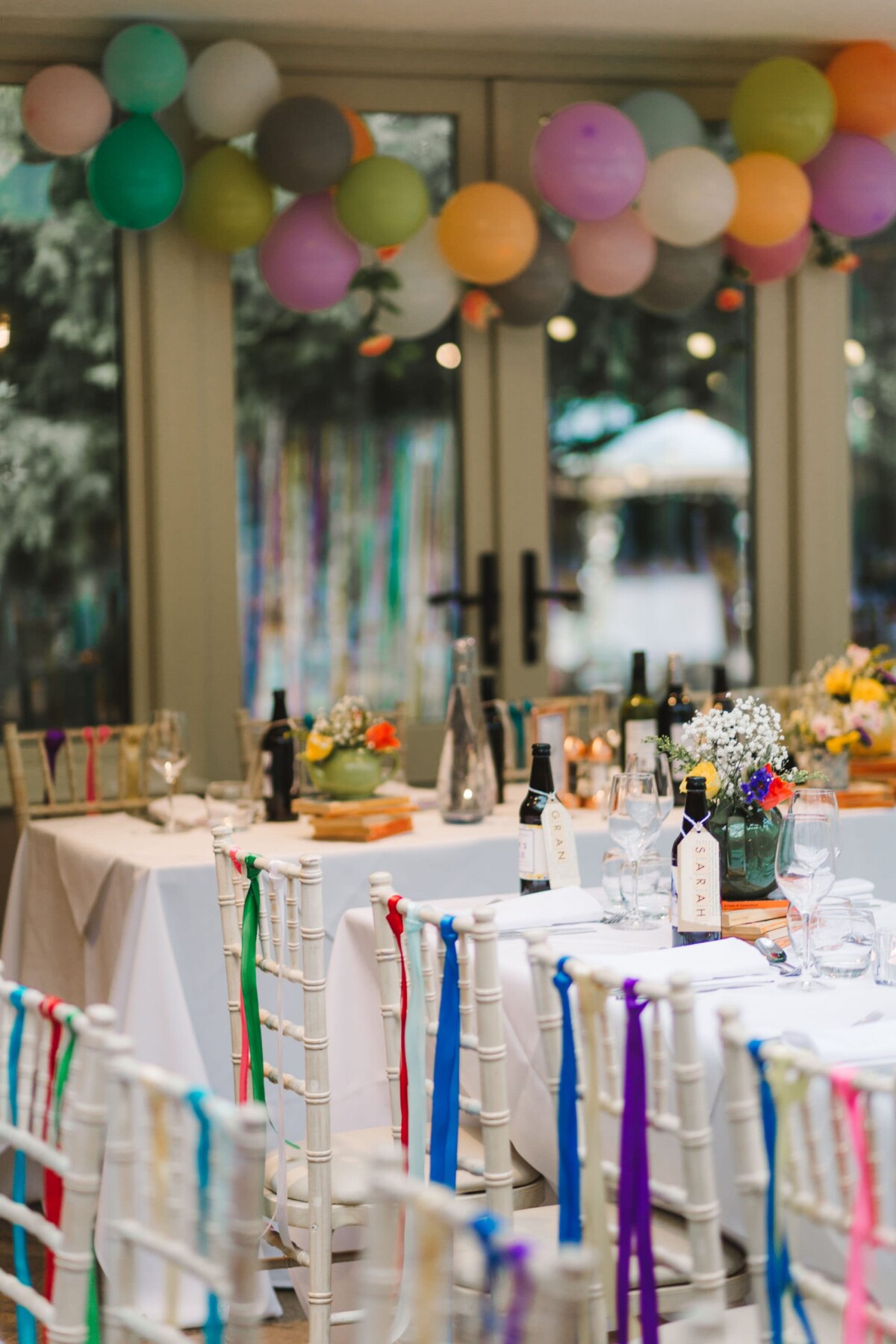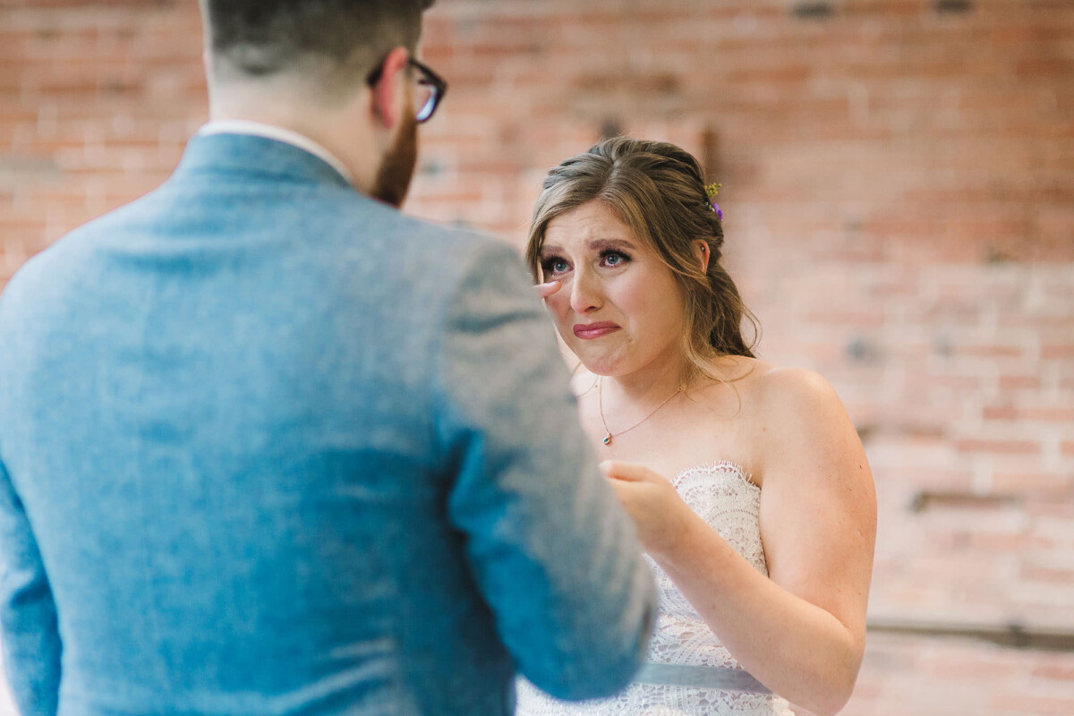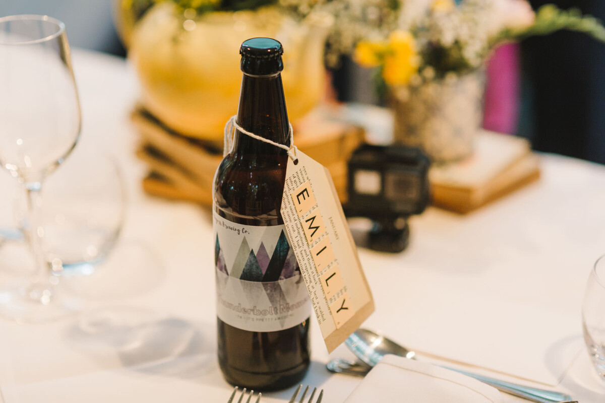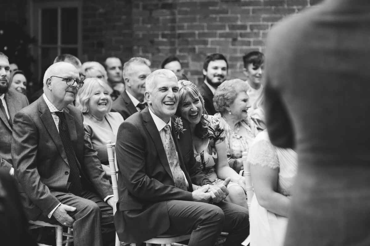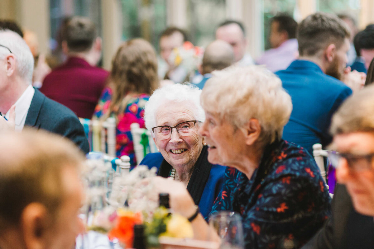 The ceremony took place in the orangery. Outdoor weddings are possible at The Old Rectory House in the summer, but the orangery is just as lovely. It looks out of the garden and the windows let in so much light. Emily had decorated it with bright coloured ribbons, too, which looked amazing. Emily cried down the aisle, and the tears carried on in the ceremony. There were plenty of lols and squeals throughout.