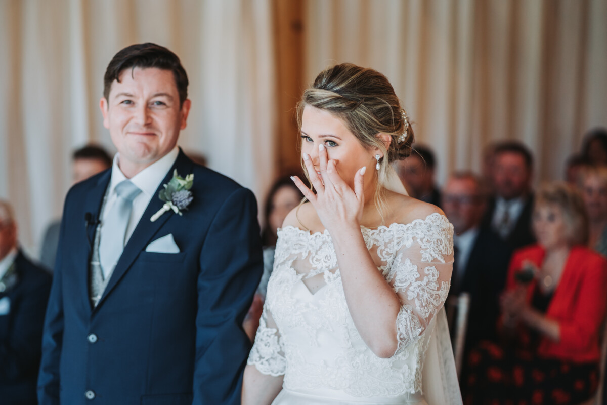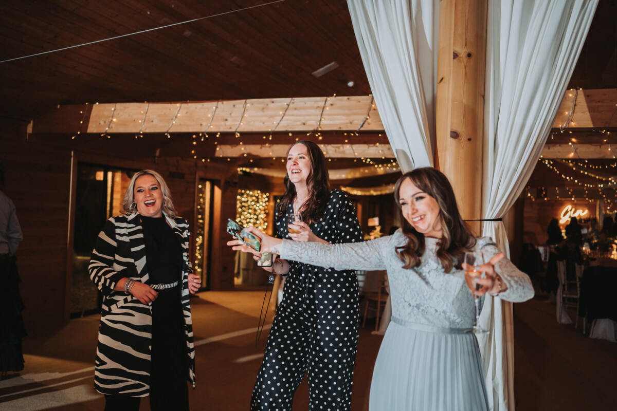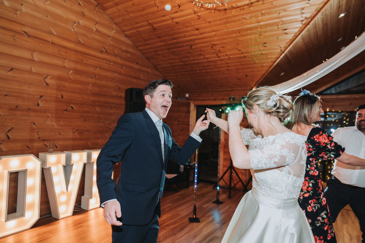 The couple had live music in the afternoon and a photobooth in the evening. The best man actually made the photobooth after seeing a youtube tutorial – it was amazing! For dinner, they had a slap-up meal, and the first dance was a romantic slow dance. They finished off the evening with lots of chatting and dancing.
