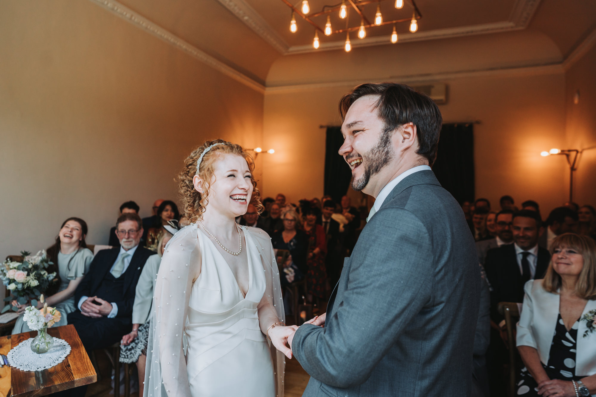 The ceremony was a beautiful service in a gorgeous room. During the ceremony there was nearly constant laughter. It was so much fun.