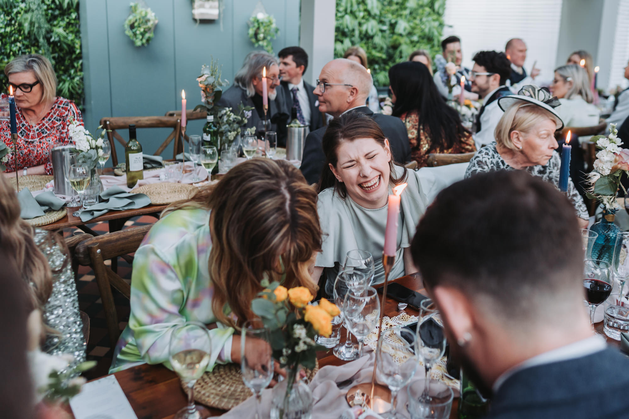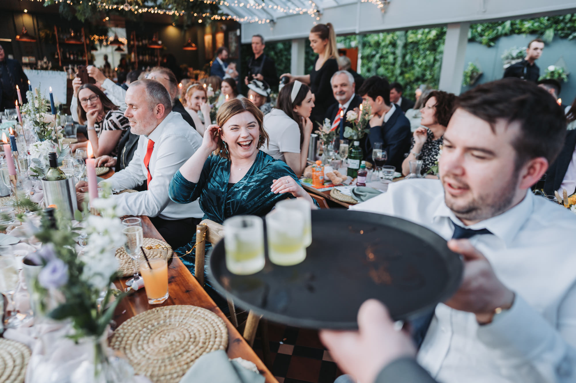 The couple had a drinks reception in the afternoon and a live band in the evening. The speeches were absolutely amazing and ended with a limoncello shot and carefully explained party popper ‘Mexican wave’. For food, they had a slap-up meal of meat and salads and so much deliciousness. The first dance was to Tiny Dancer (which I now have stuck in my head!) and was a good old traditional wedding shuffle with some twirls thrown in. They finished off the evening with lots of dancing and more amazing food.