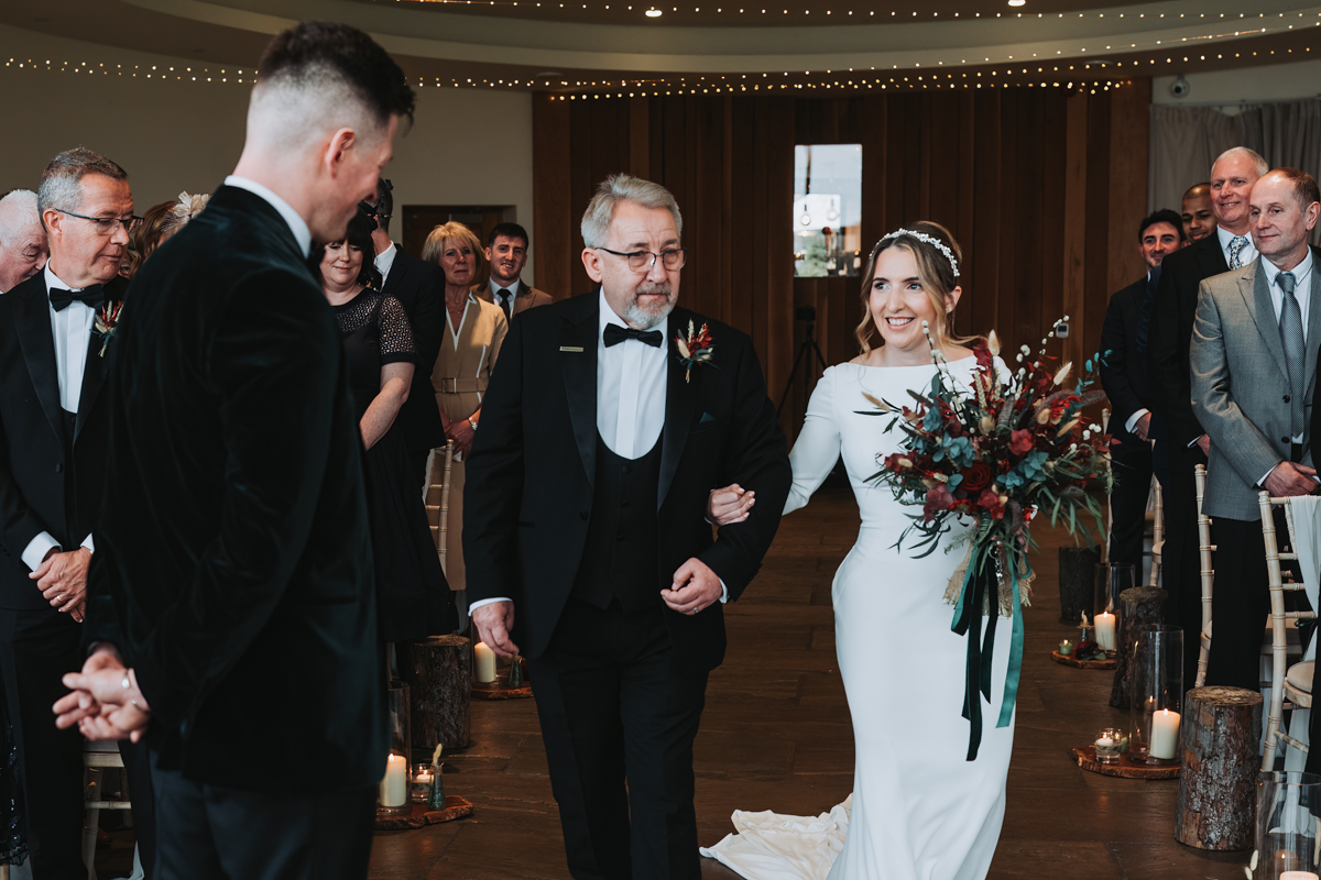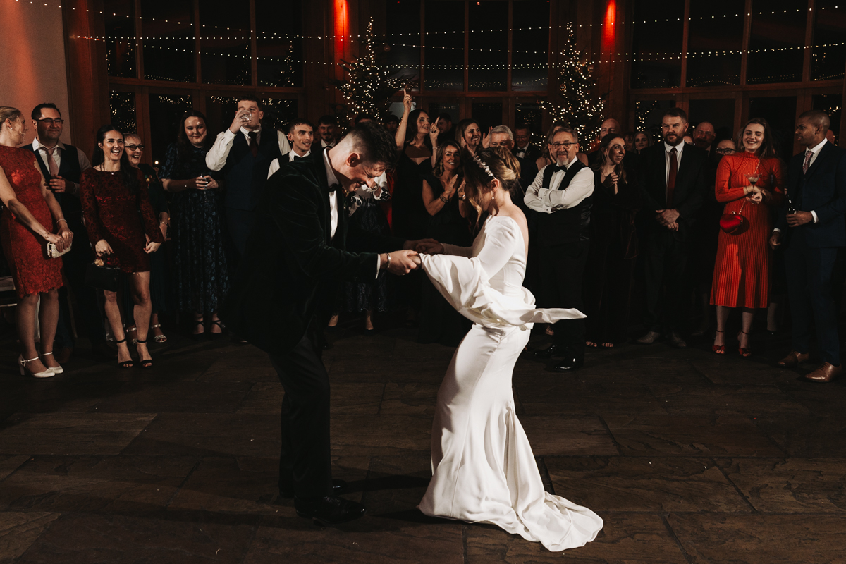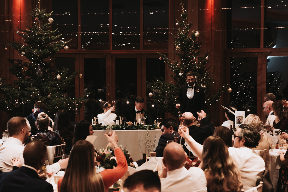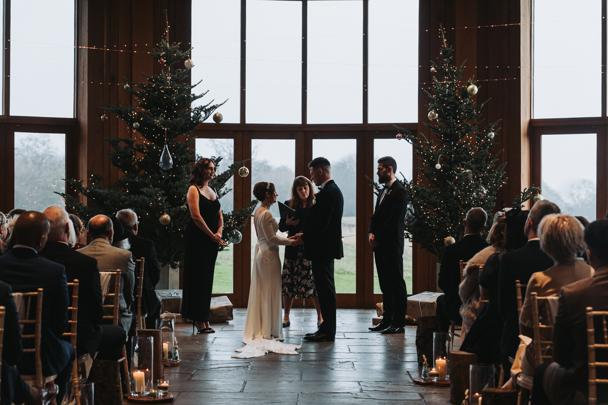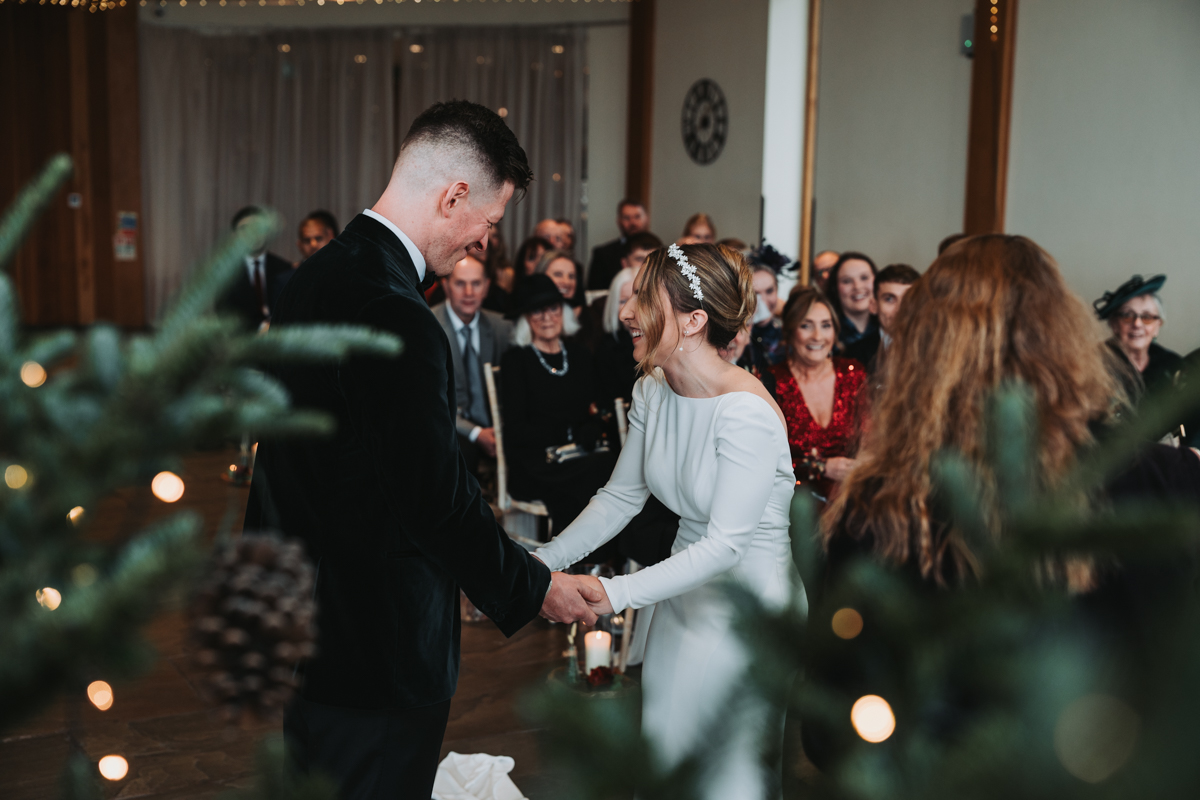 The ceremony itself was held right in front of the twinkly Christmas trees, with the gorgeous Ribble Valley views beyond. They had some personal vows and readings, which left lots of people in tears. The atmosphere throughout the whole day was so chilled and happy, which is exactly how a wedding should be.