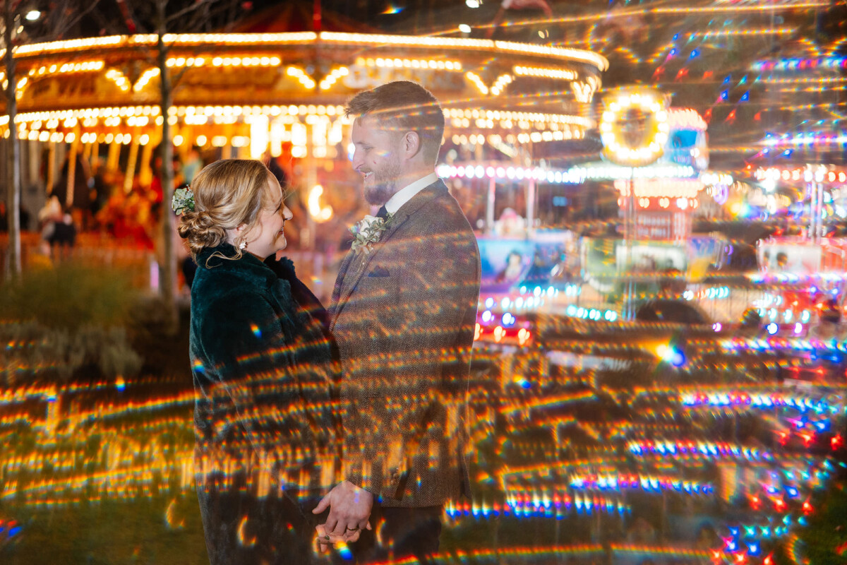 After the ceremony, we decided to go for a walk and get some cute photos in the twinkling city lights.  I got some really special photos under the fairy lights and even though they both said they hate having their photo taken they did so well! The weather at this winter wedding was icy cold, but that didn’t bother them at all.