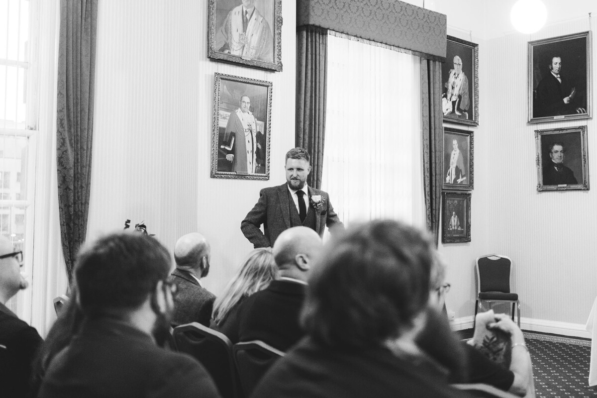 The ceremony took place in the beautiful West room on the ground floor of the Hall. It was really cosy and the lights from outside helped to softly light the room. The ceremony included a beautiful reading. It was a wonderful occasion, full of happiness.