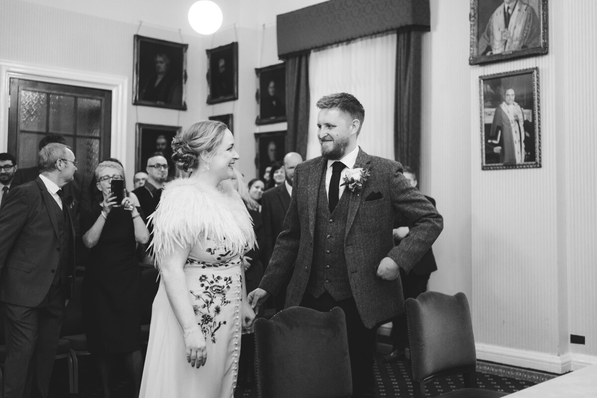 Alice and Tom got married at the gorgeous Civic Hall, Leeds. It was a super fun winter wedding, with street food, a cheesecake and zero formality. This Urban winter Leeds city centre wedding is full to the brim of wintery loveliness.